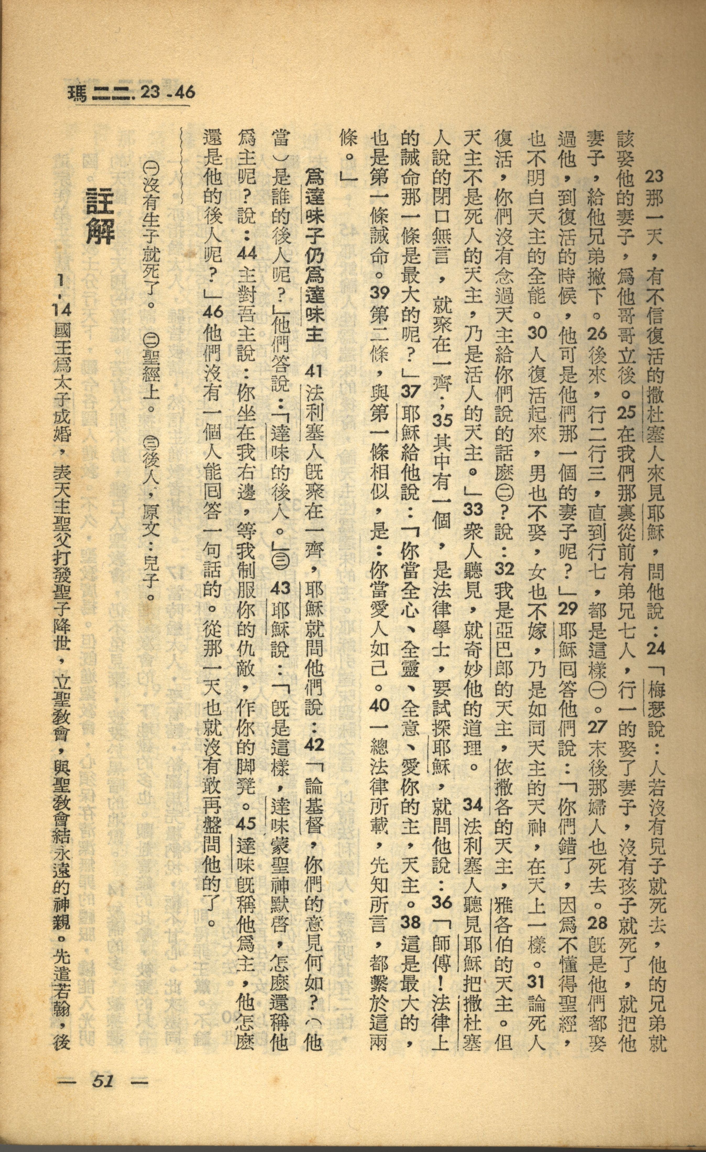 1956年新經全集 馬太福音 22 章 23 節到 22 章 46 節