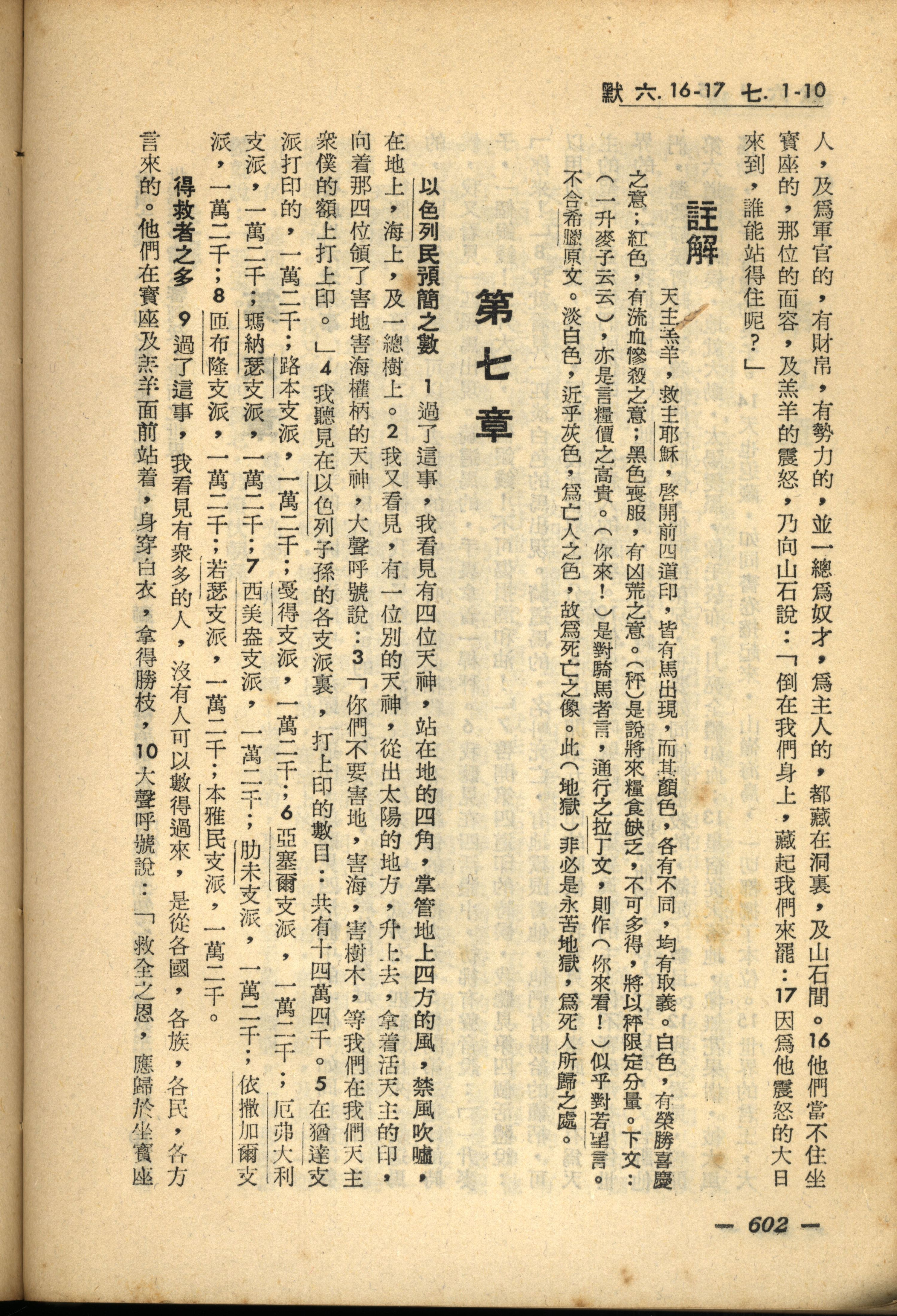 1956年新經全集 啟示錄 6 章 16 節到 7 章 10 節