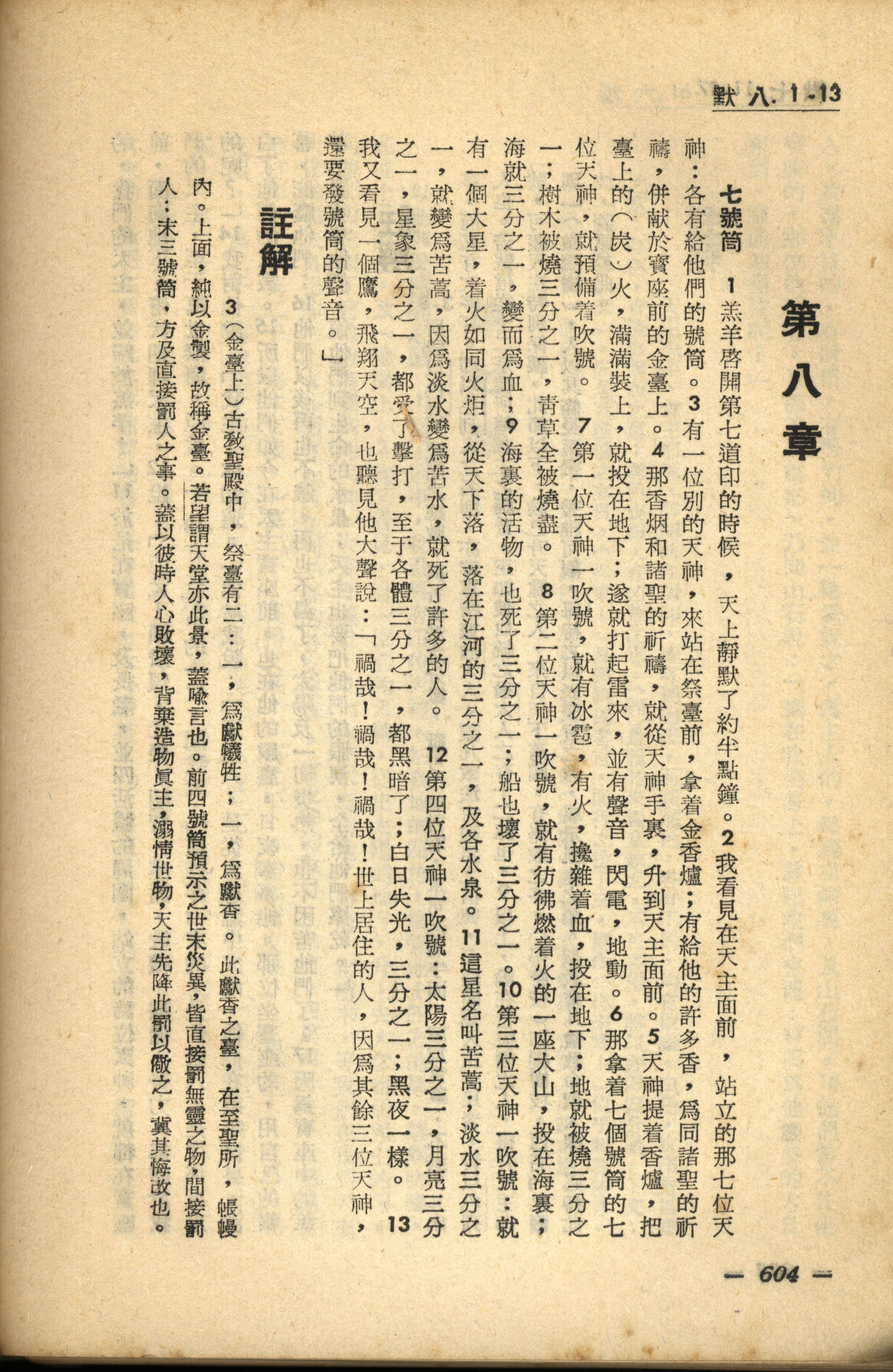 1956年新經全集 啟示錄 8 章 1 節到 8 章 13 節