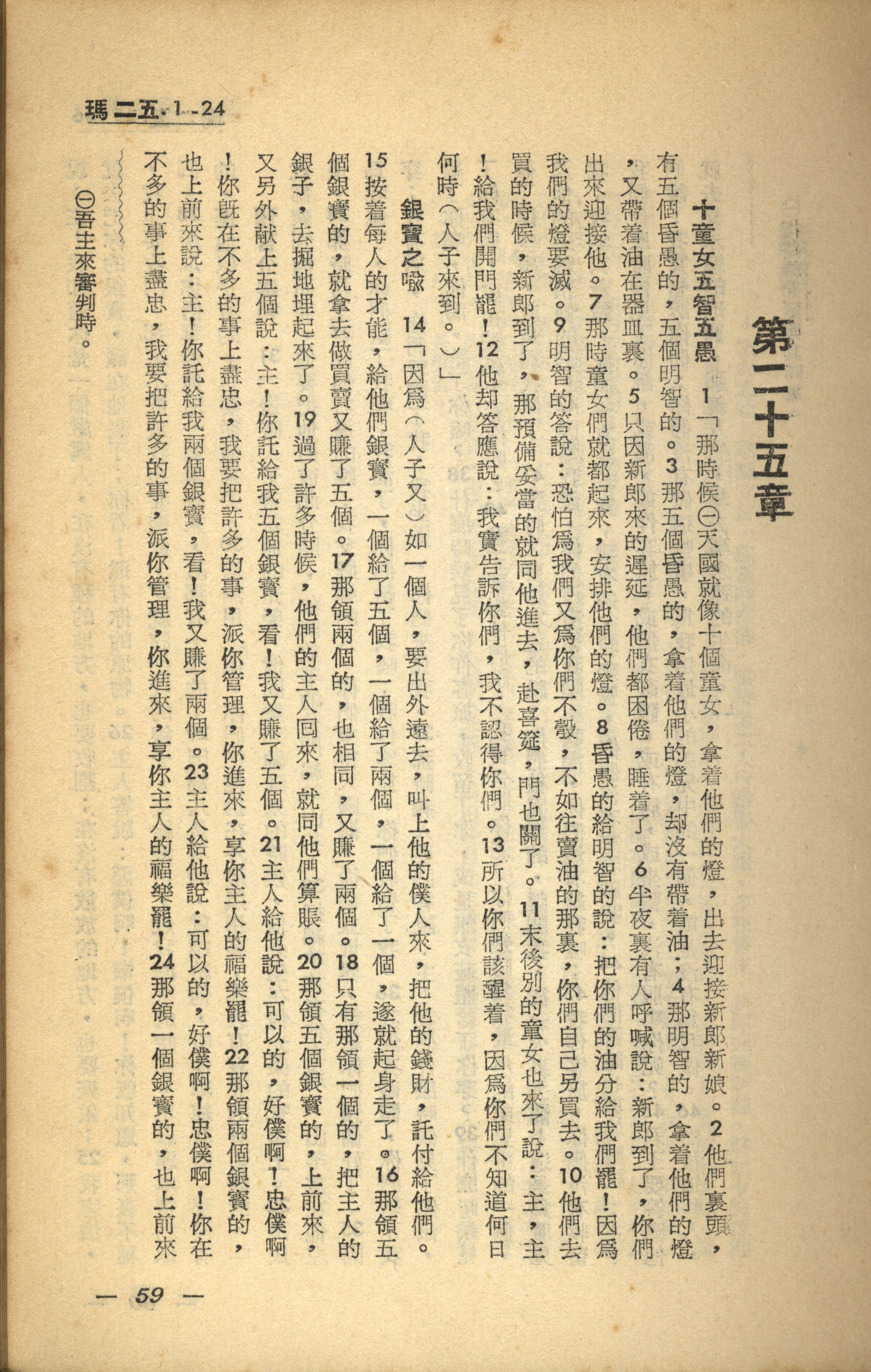 1956年新經全集 馬太福音 25 章 1 節到 25 章 24 節