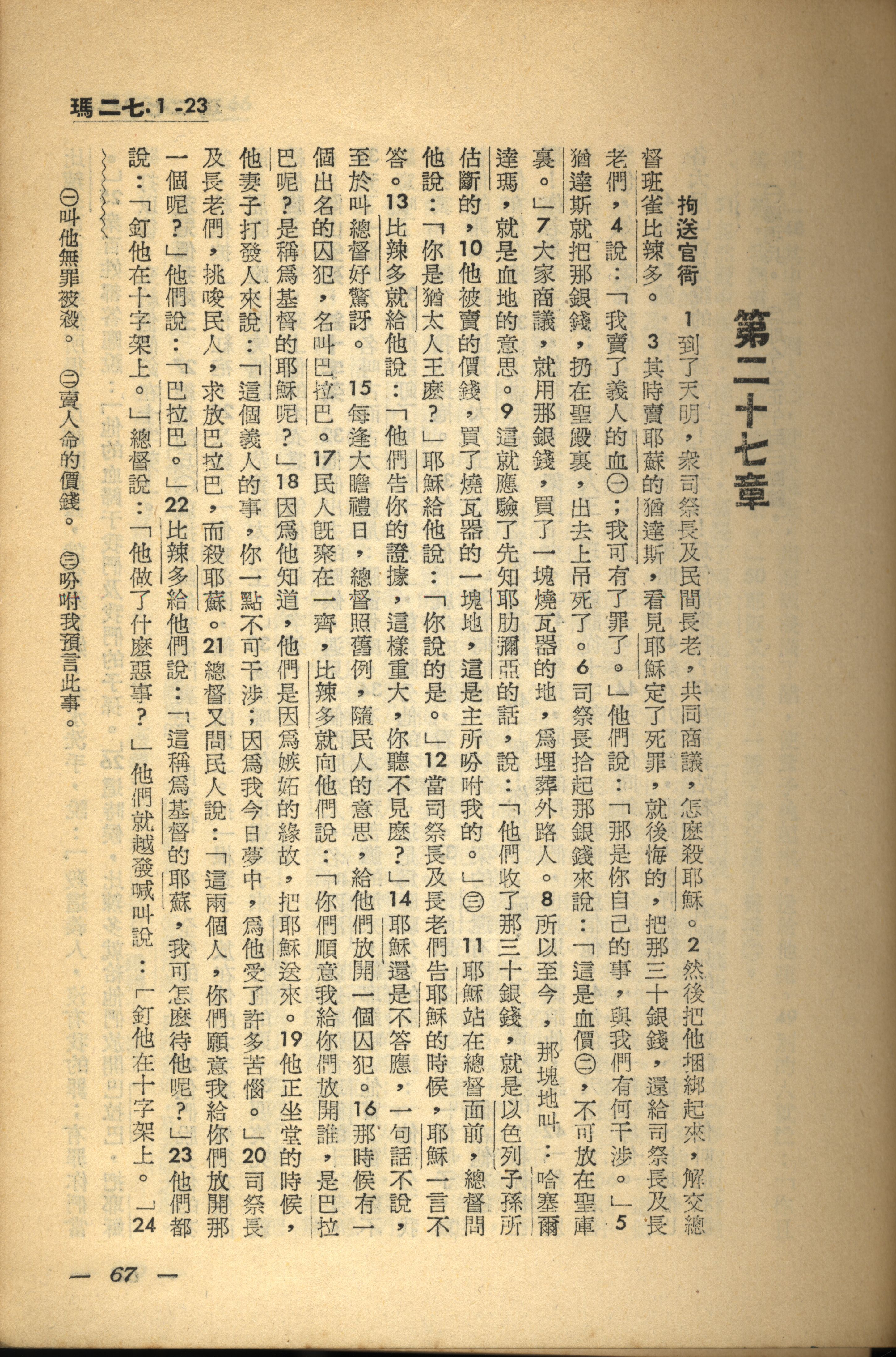 1956年新經全集 馬太福音 27 章 1 節到 27 章 23 節