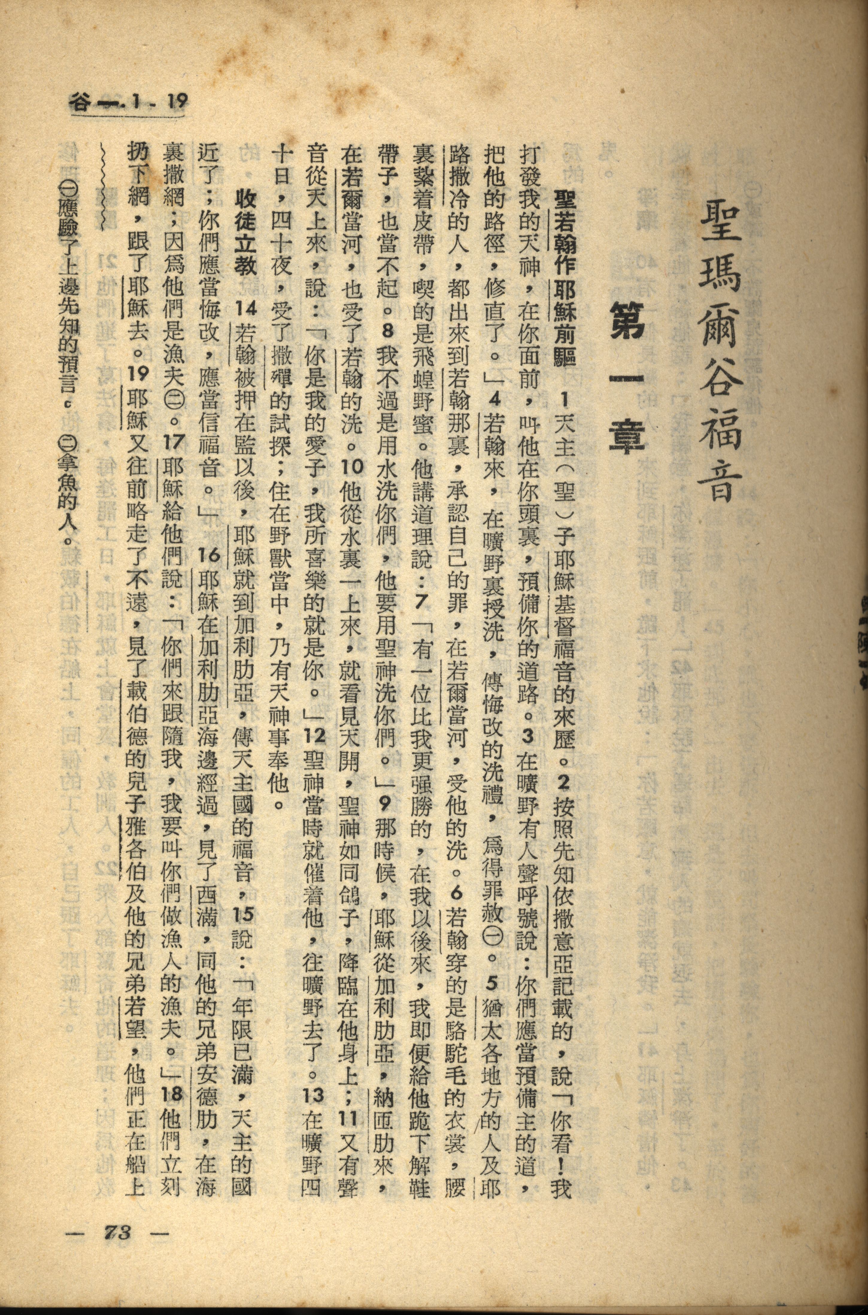 1956年新經全集 馬可福音 1 章 1 節到 1 章 19 節