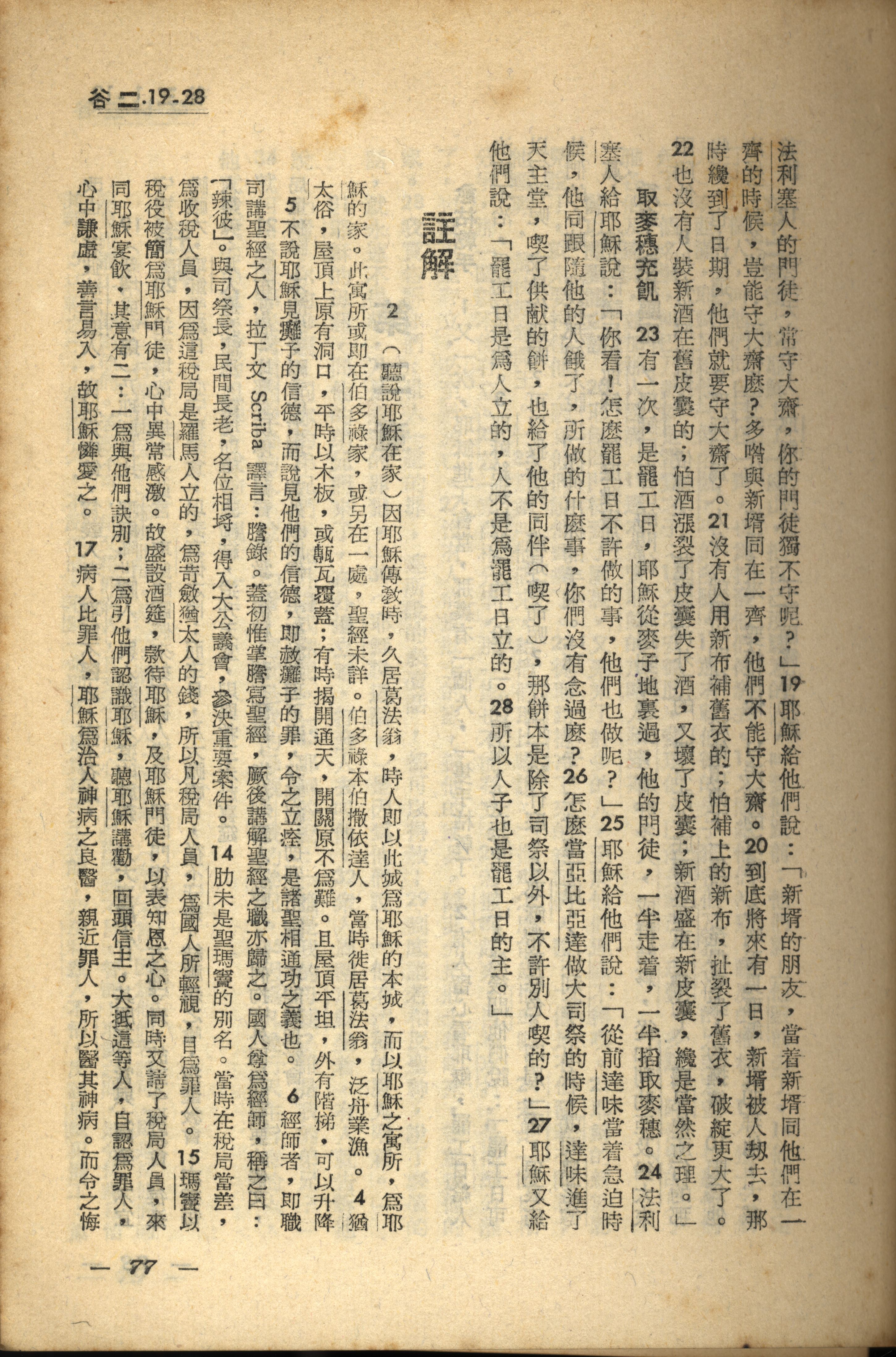 1956年新經全集 馬可福音 2 章 19 節到 2 章 28 節