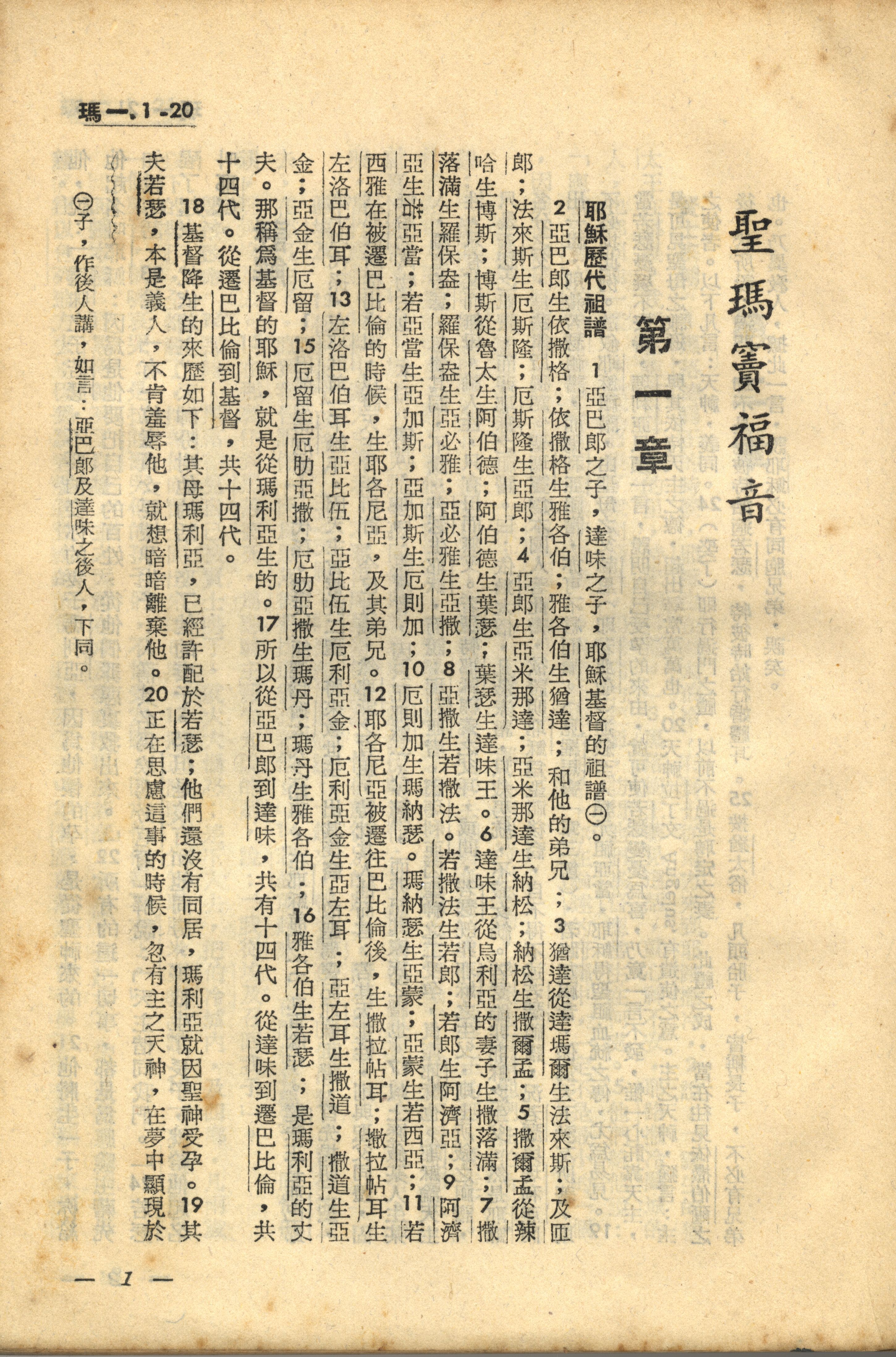 1956年新經全集 馬太福音 1 章 1 節到 1 章 20 節