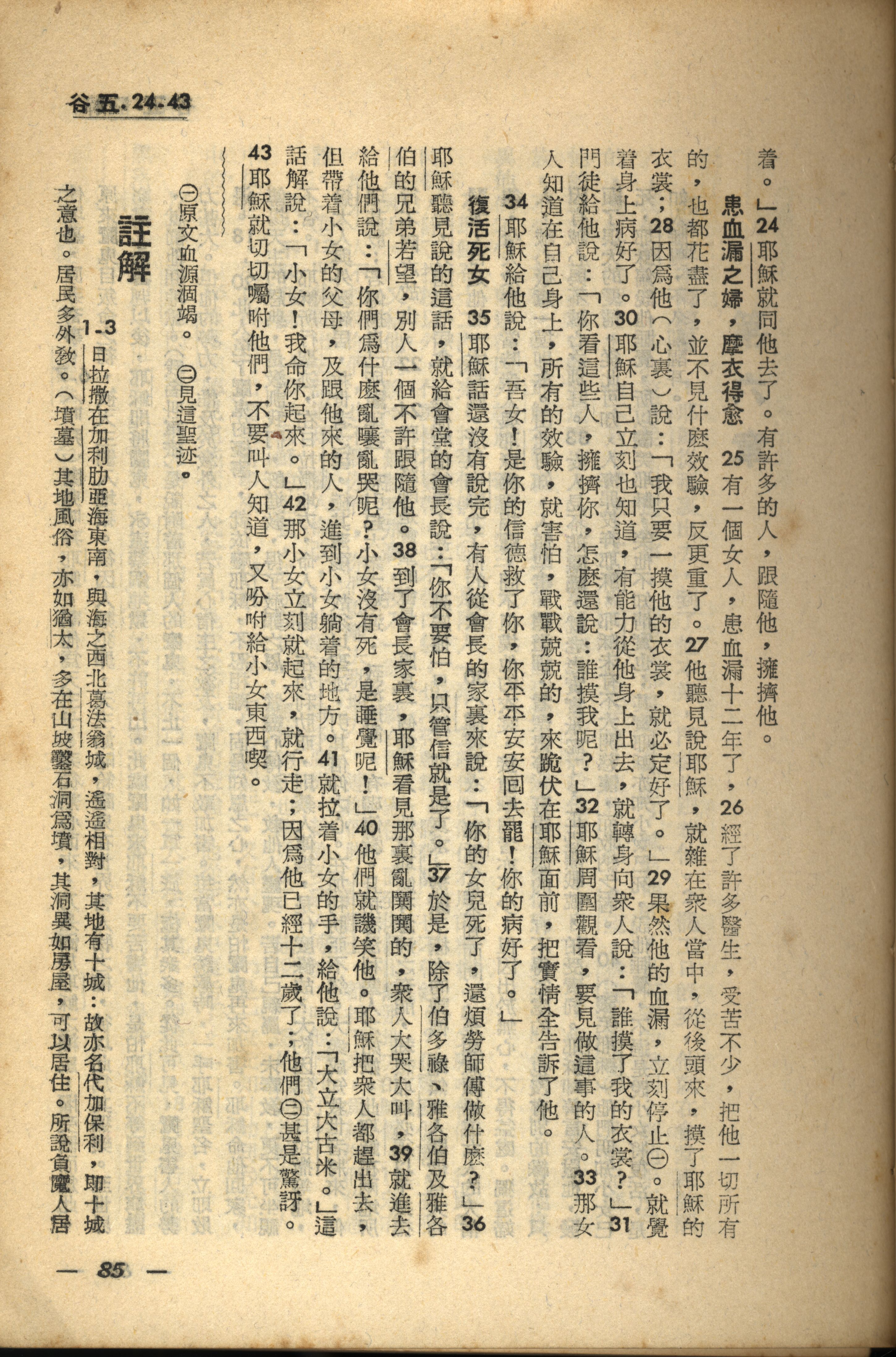 1956年新經全集 馬可福音 5 章 24 節到 5 章 43 節