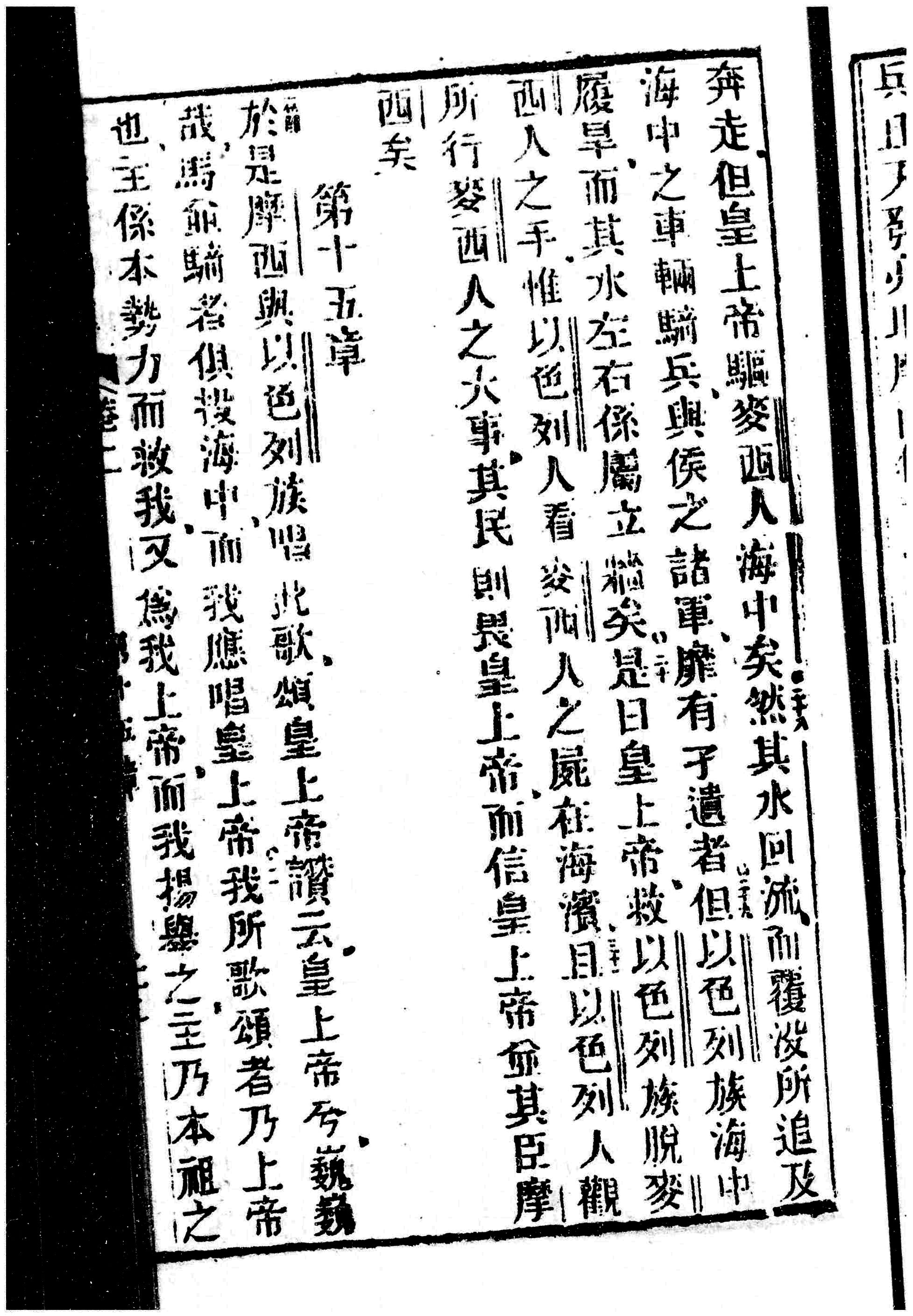 1853年欽定舊遺詔聖書卷之一 出埃及記 14 章 28 節到 15 章 2 節