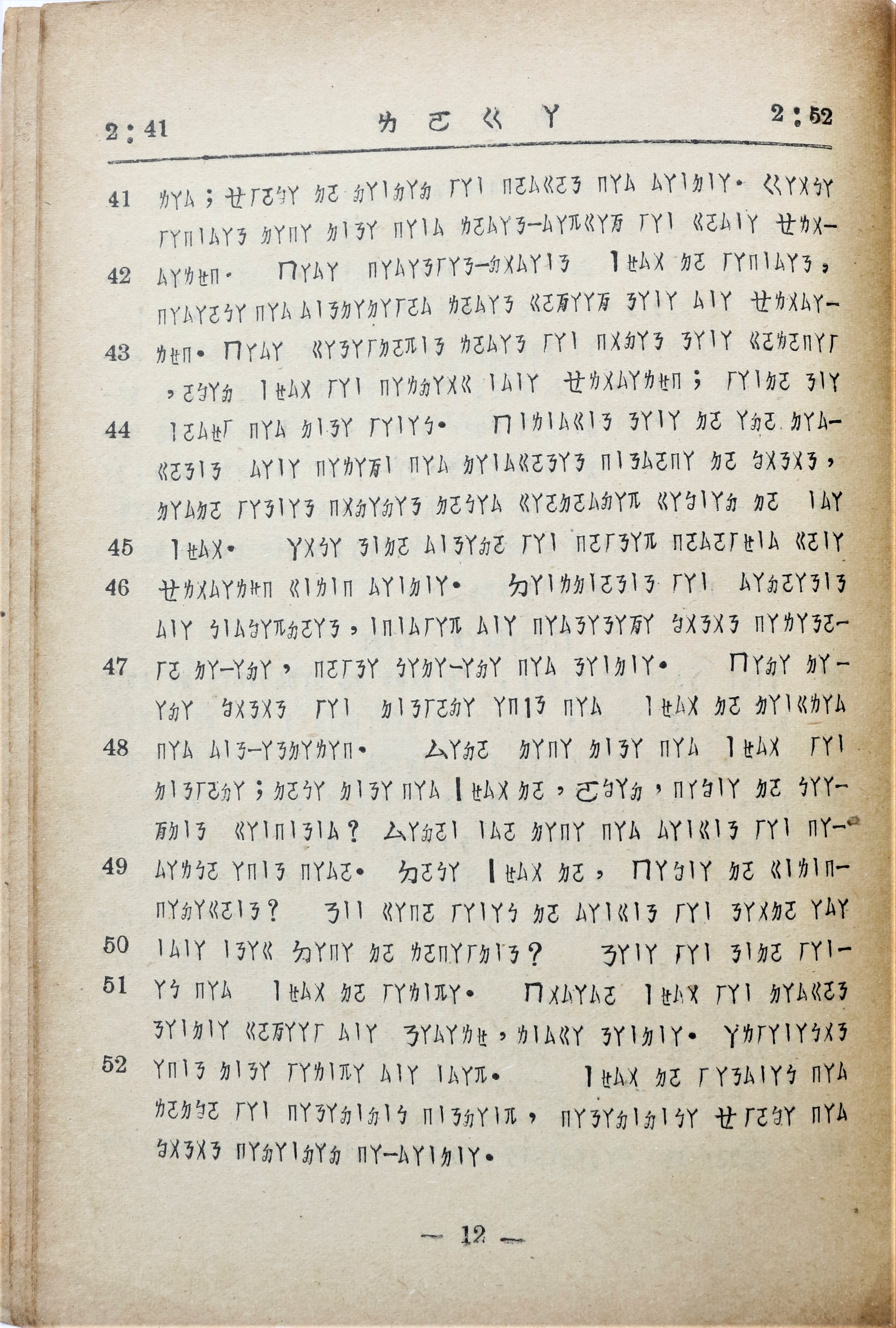 1955年布農語路加福音 路加福音 2 章 41 節到 2 章 52 節