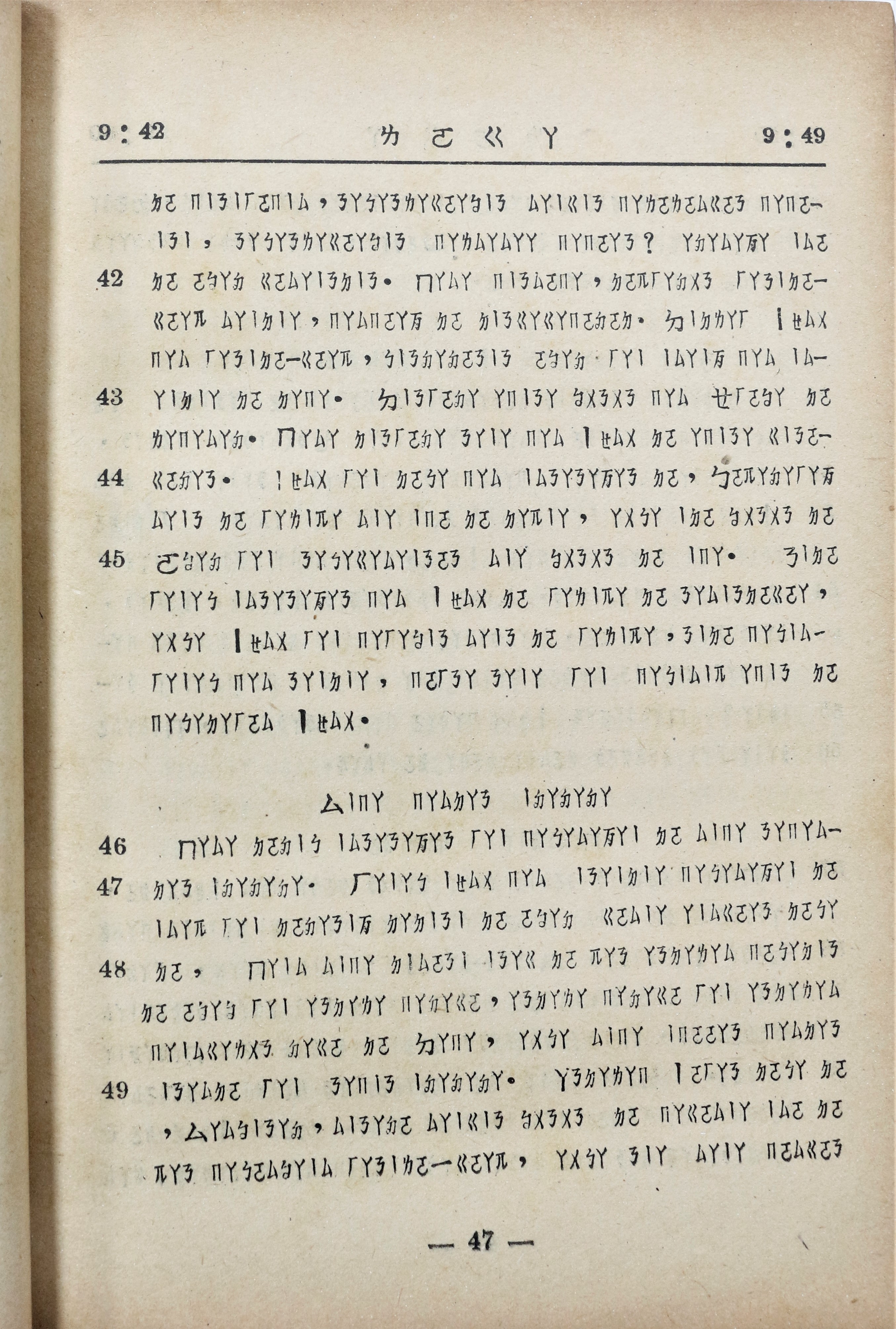 1955年布農語路加福音 路加福音 9 章 41 節到 9 章 49 節