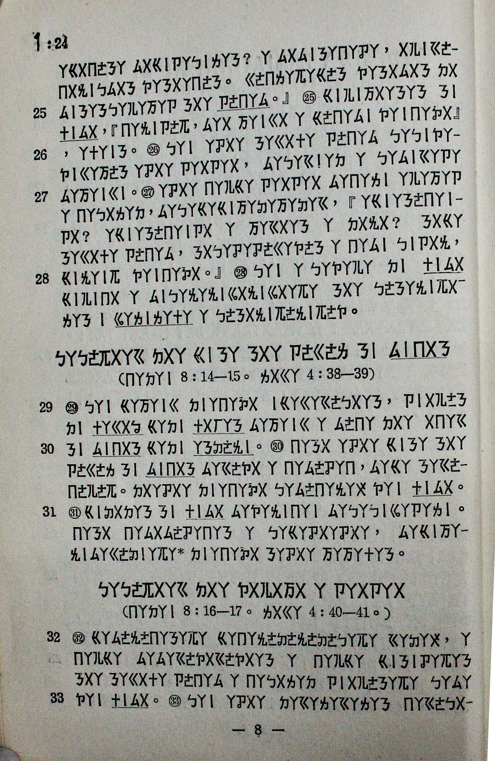 1959年排灣語馬可福音 馬可福音 1 章 24 節到 1 章 33 節