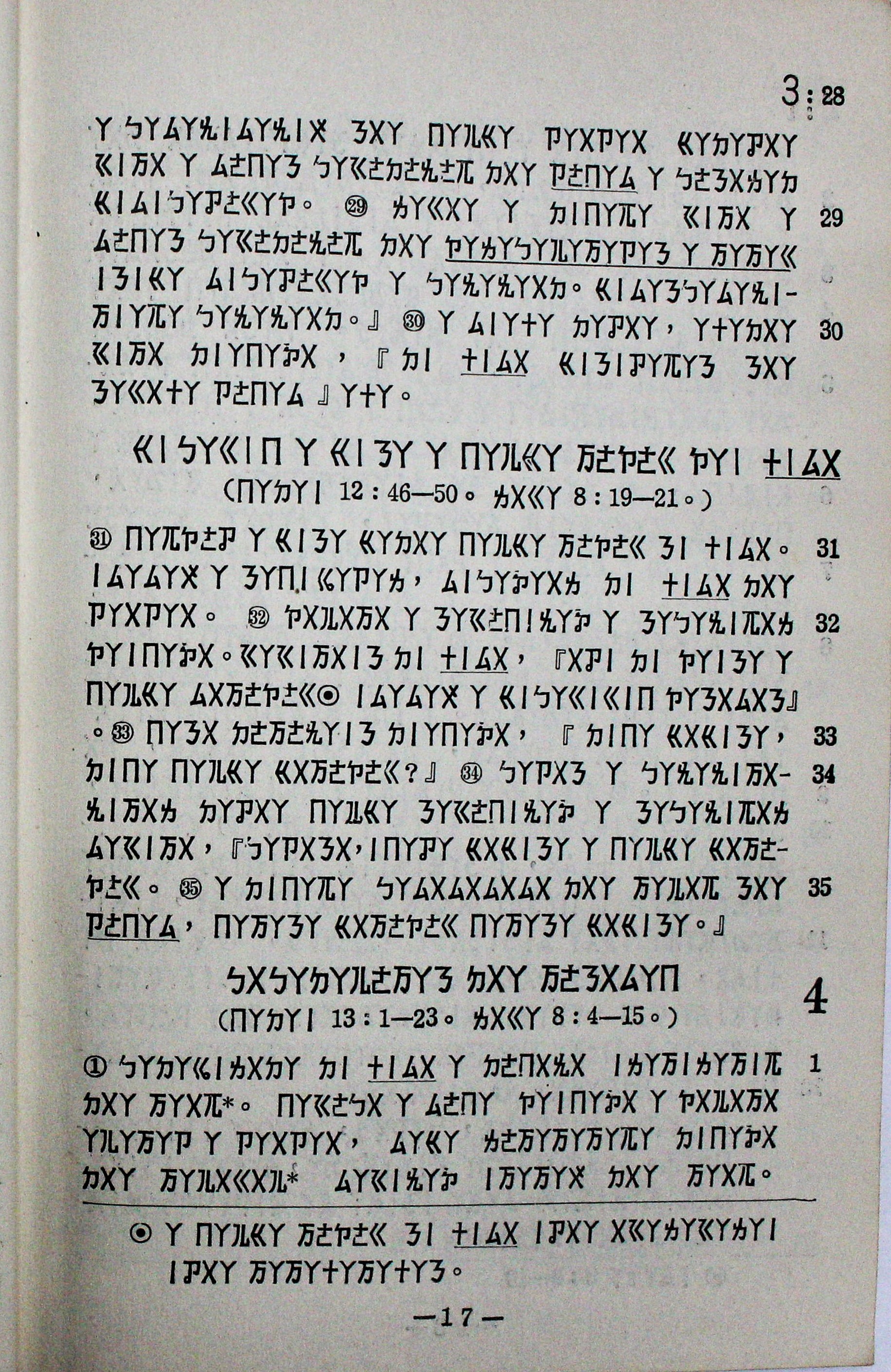 1959年排灣語馬可福音 馬可福音 3 章 28 節到 4 章 1 節