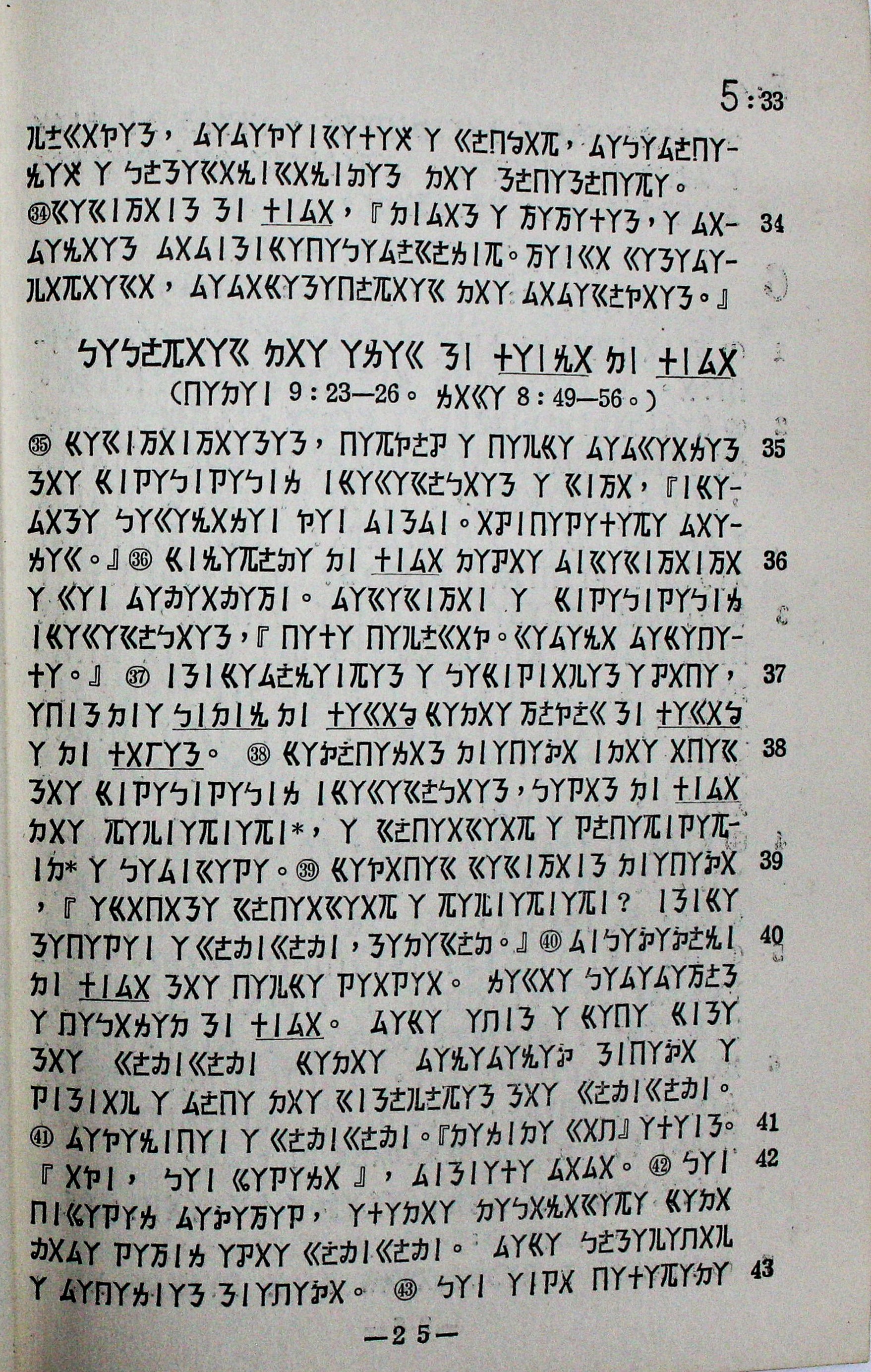 1959年排灣語馬可福音 馬可福音 5 章 33 節到 5 章 43 節