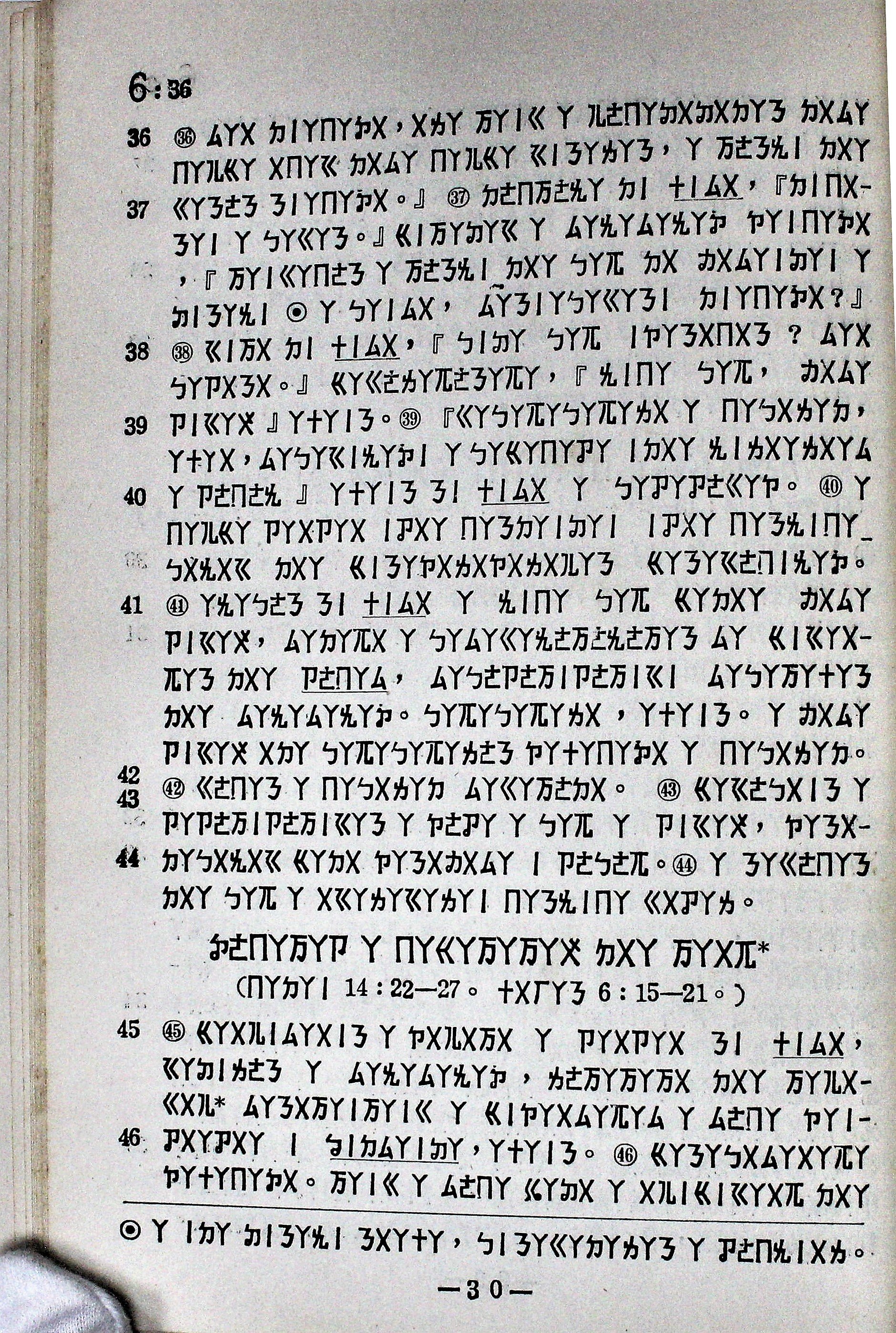 1959年排灣語馬可福音 馬可福音 6 章 36 節到 6 章 46 節