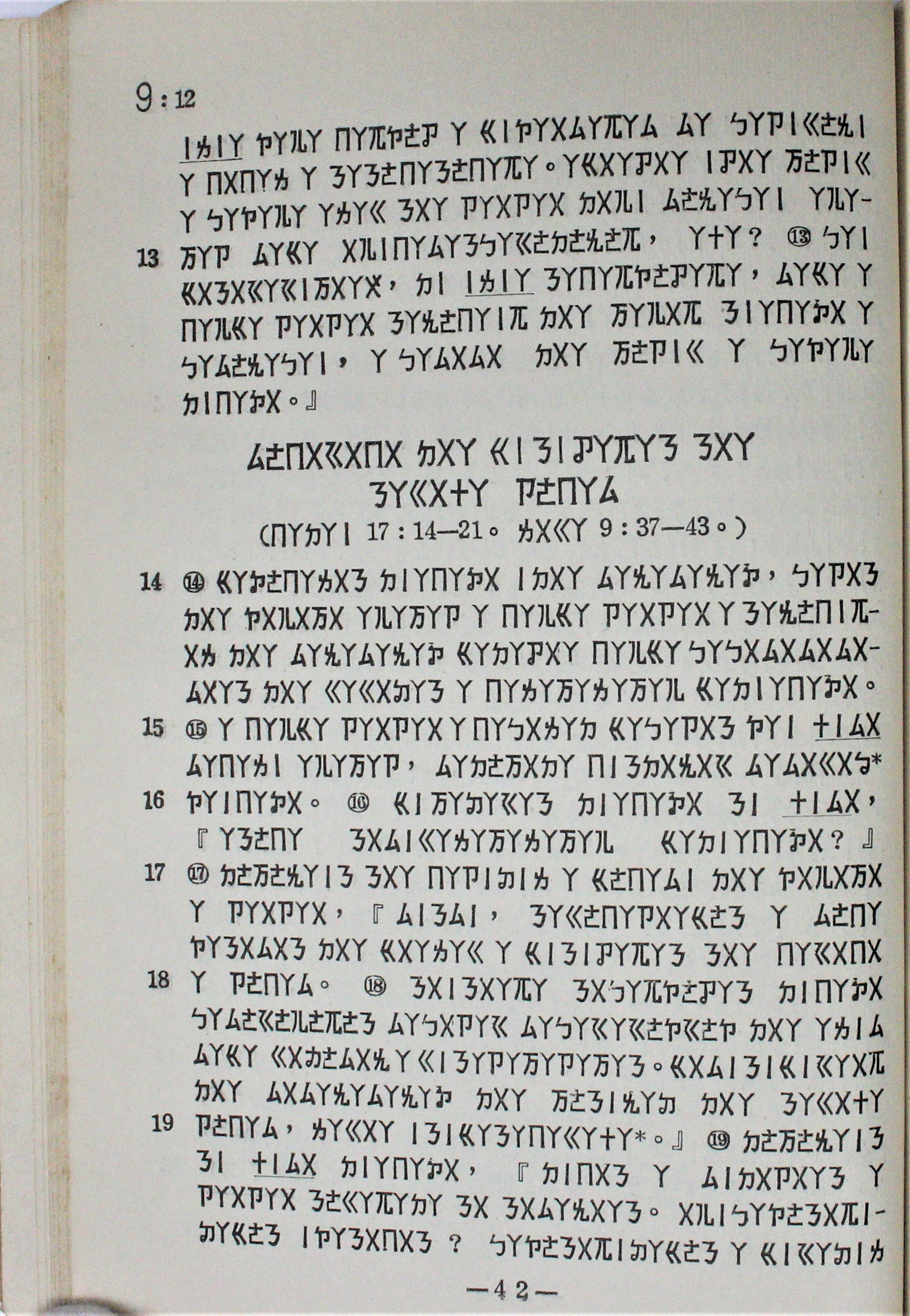 1959年排灣語馬可福音 馬可福音 9 章 12 節到 9 章 19 節