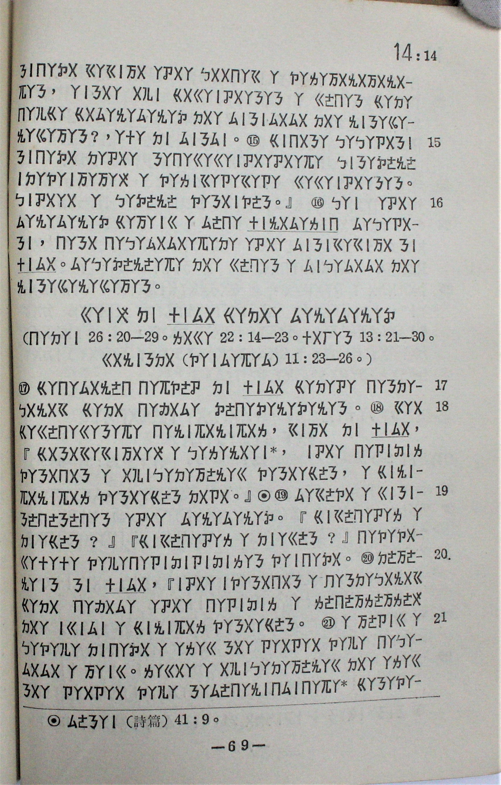 1959年排灣語馬可福音 馬可福音 14 章 14 節到 14 章 21 節