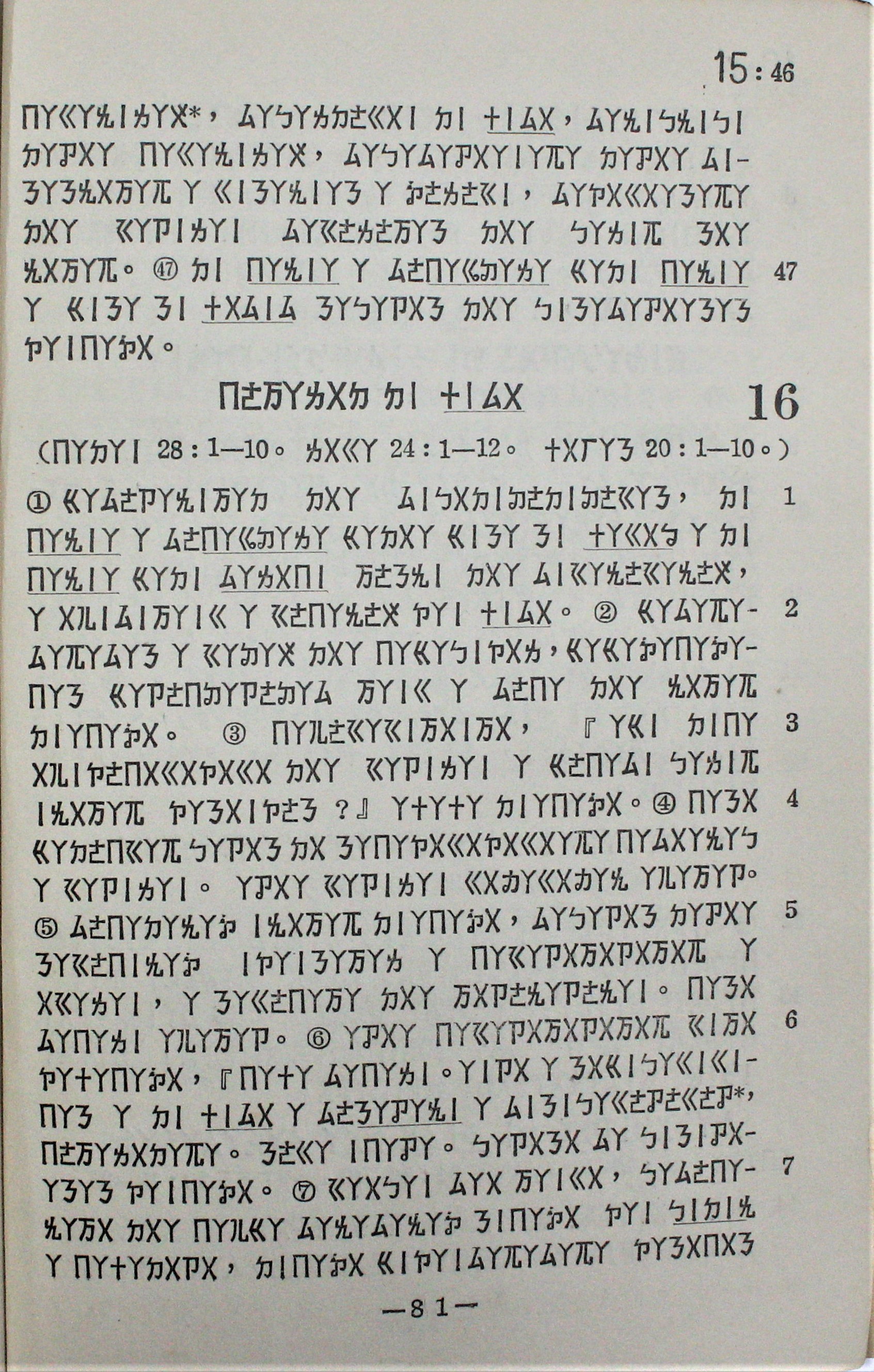1959年排灣語馬可福音 馬可福音 15 章 46 節到 16 章 7 節