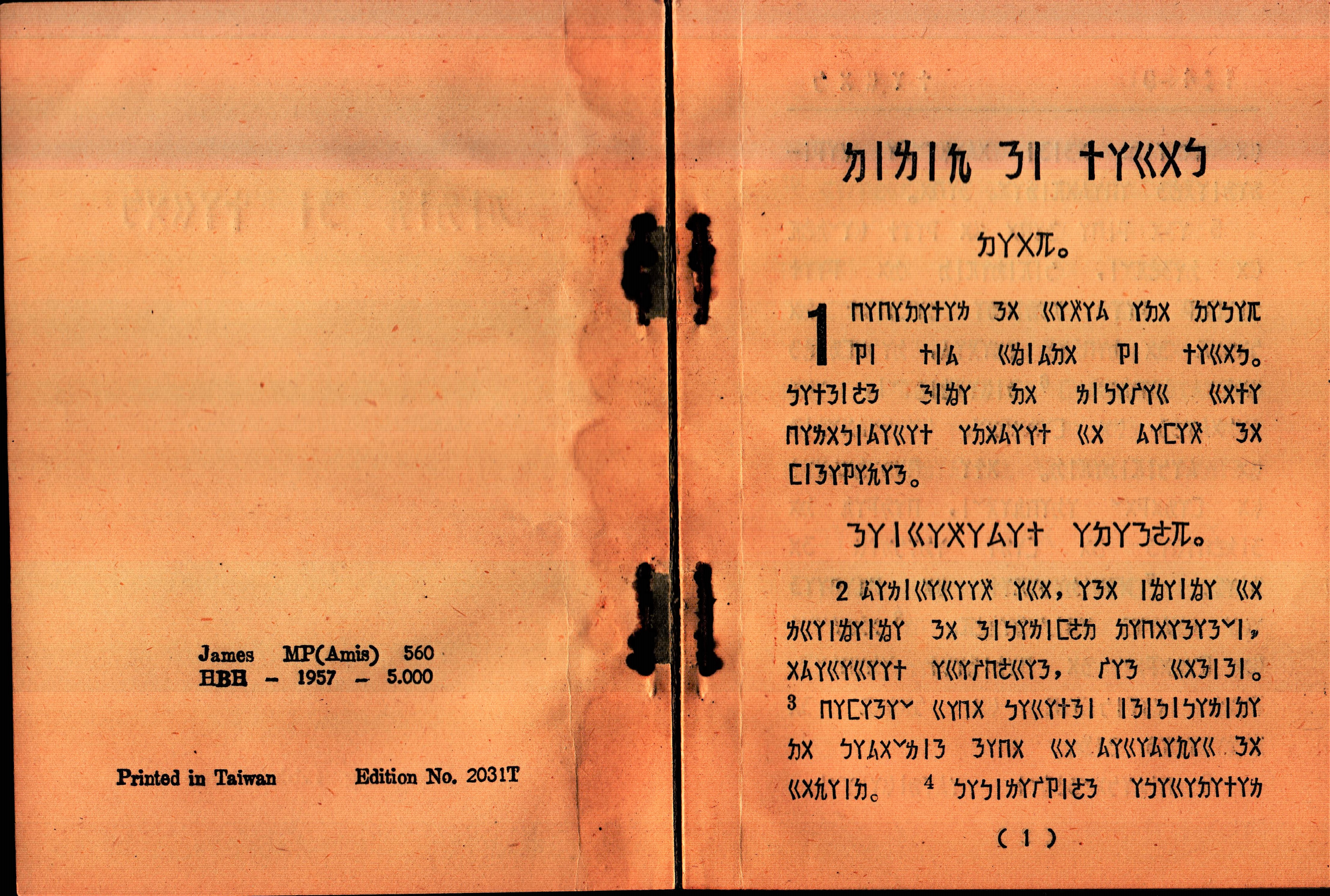 1957年阿美語雅各書 雅各書 0 章 3 節到 1 章 4 節