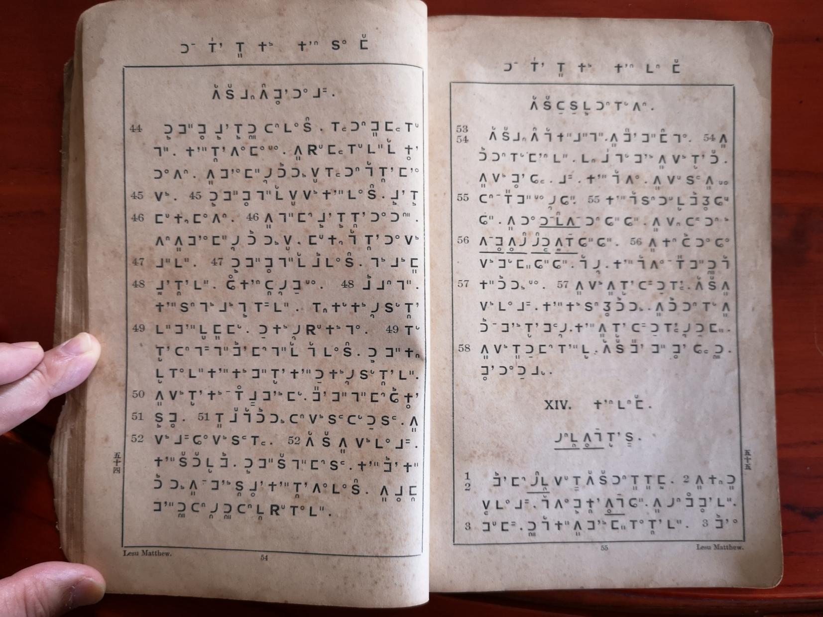 1912年東栗僳語馬太福音 馬太福音 13 章 44 節到 14 章 3 節