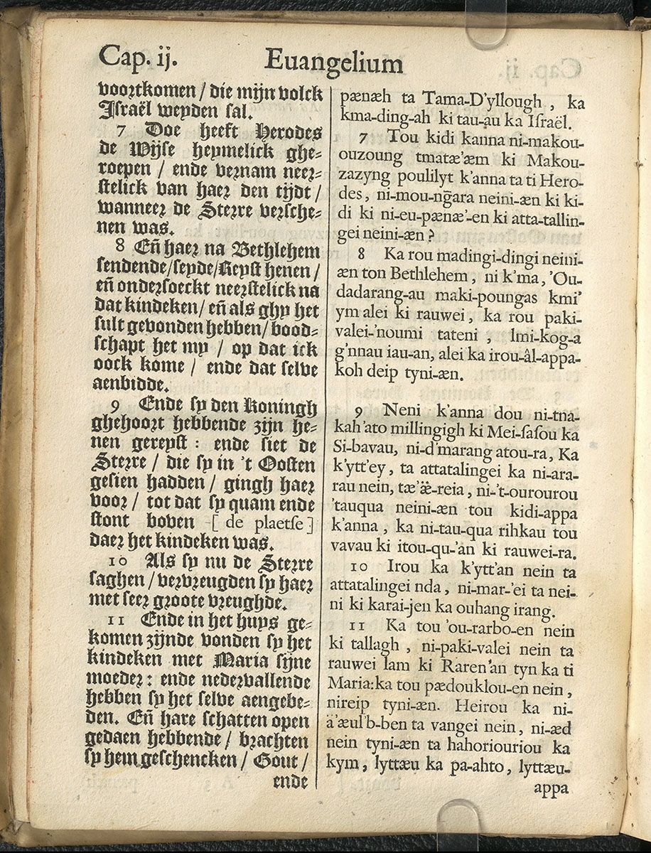 1661年新港譯本馬太福音和約翰福音(丹麥皇家圖書館) 馬太福音 2 章 7 節到 2 章 11 節