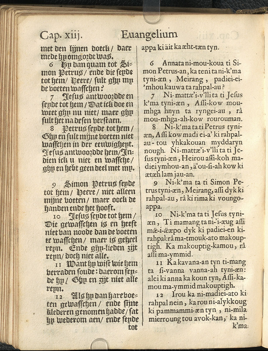1661年新港譯本馬太福音和約翰福音(丹麥皇家圖書館) 約翰福音 13 章 6 節到 13 章 12 節