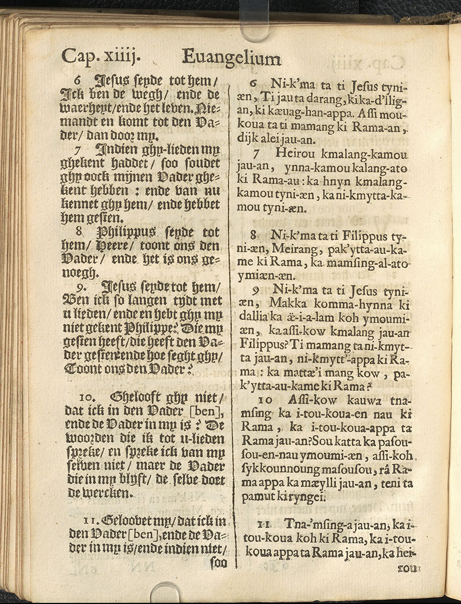 1661年新港譯本馬太福音和約翰福音(丹麥皇家圖書館) 約翰福音 14 章 6 節到 14 章 11 節