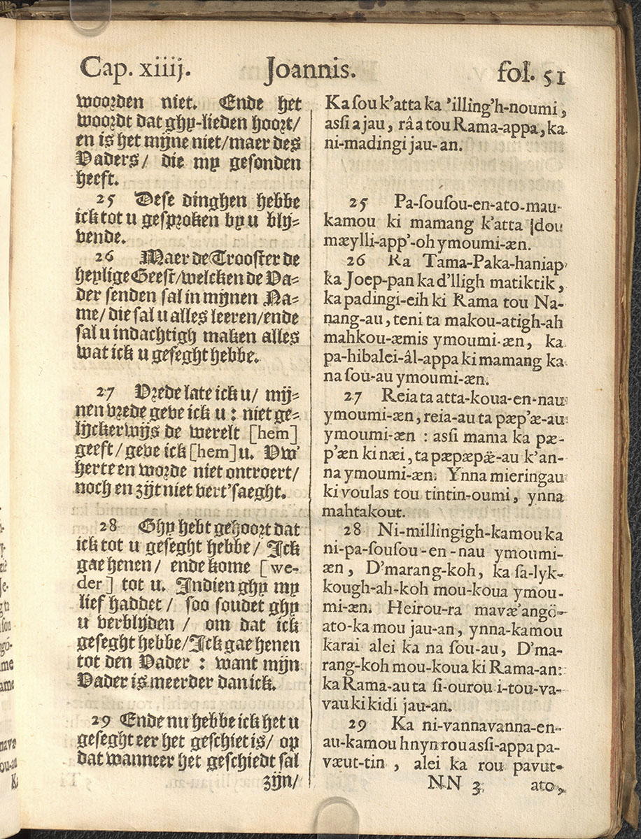 1661年新港譯本馬太福音和約翰福音(丹麥皇家圖書館) 約翰福音 14 章 25 節到 14 章 29 節