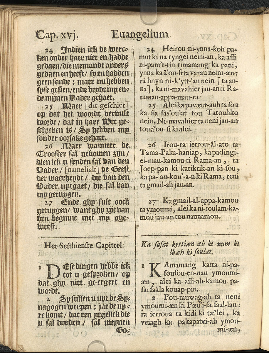 1661年新港譯本馬太福音和約翰福音(丹麥皇家圖書館) 約翰福音 15 章 24 節到 16 章 2 節