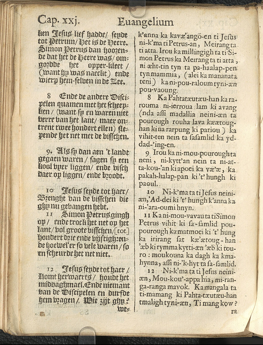 1661年新港譯本馬太福音和約翰福音(丹麥皇家圖書館) 約翰福音 21 章 8 節到 21 章 12 節
