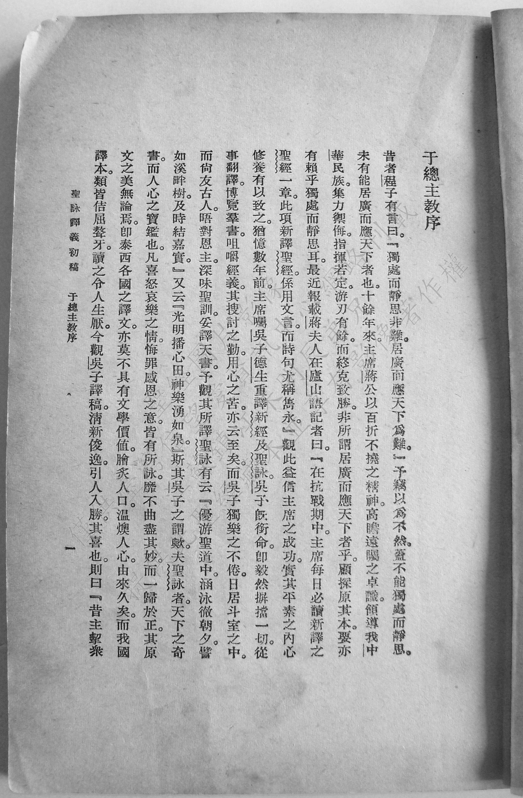 1945年聖詠譯義初稿 封面 1 章 3 節到 1 章 3 節