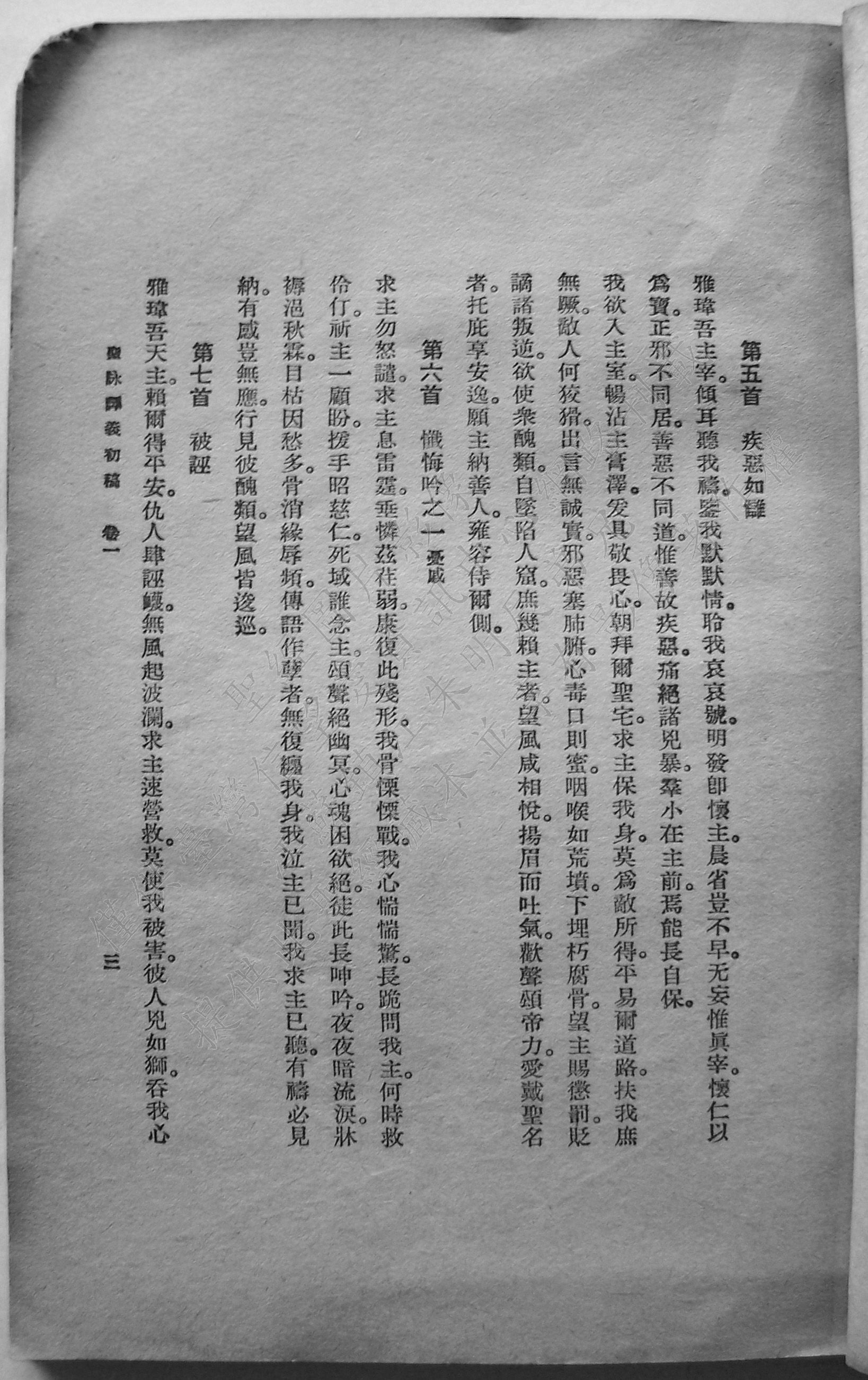 1945年聖詠譯義初稿 詩篇 5 章 到 7 章