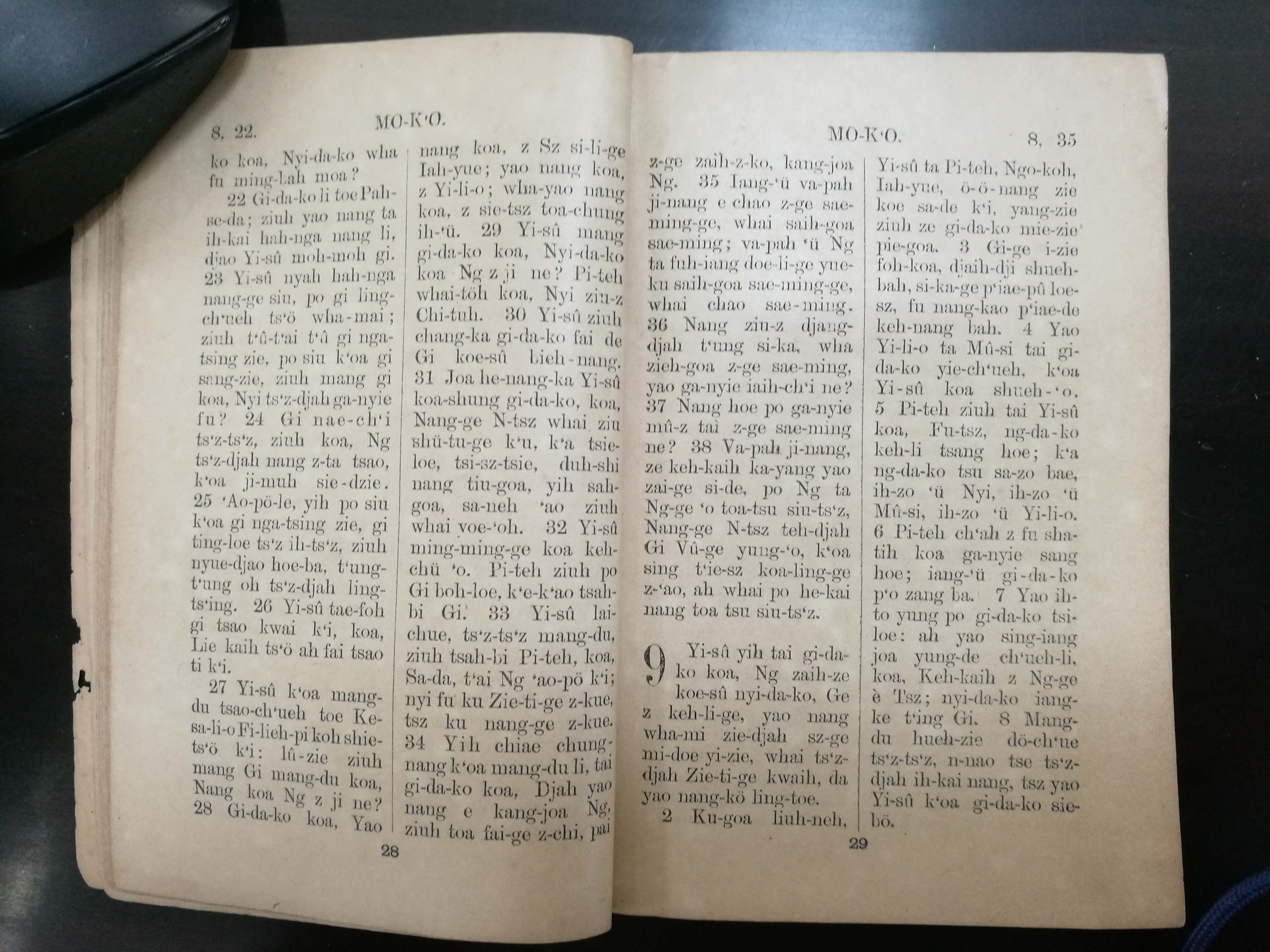 1902年溫州話羅馬字馬可福音 馬可福音 8 章 22 節到 9 章 8 節