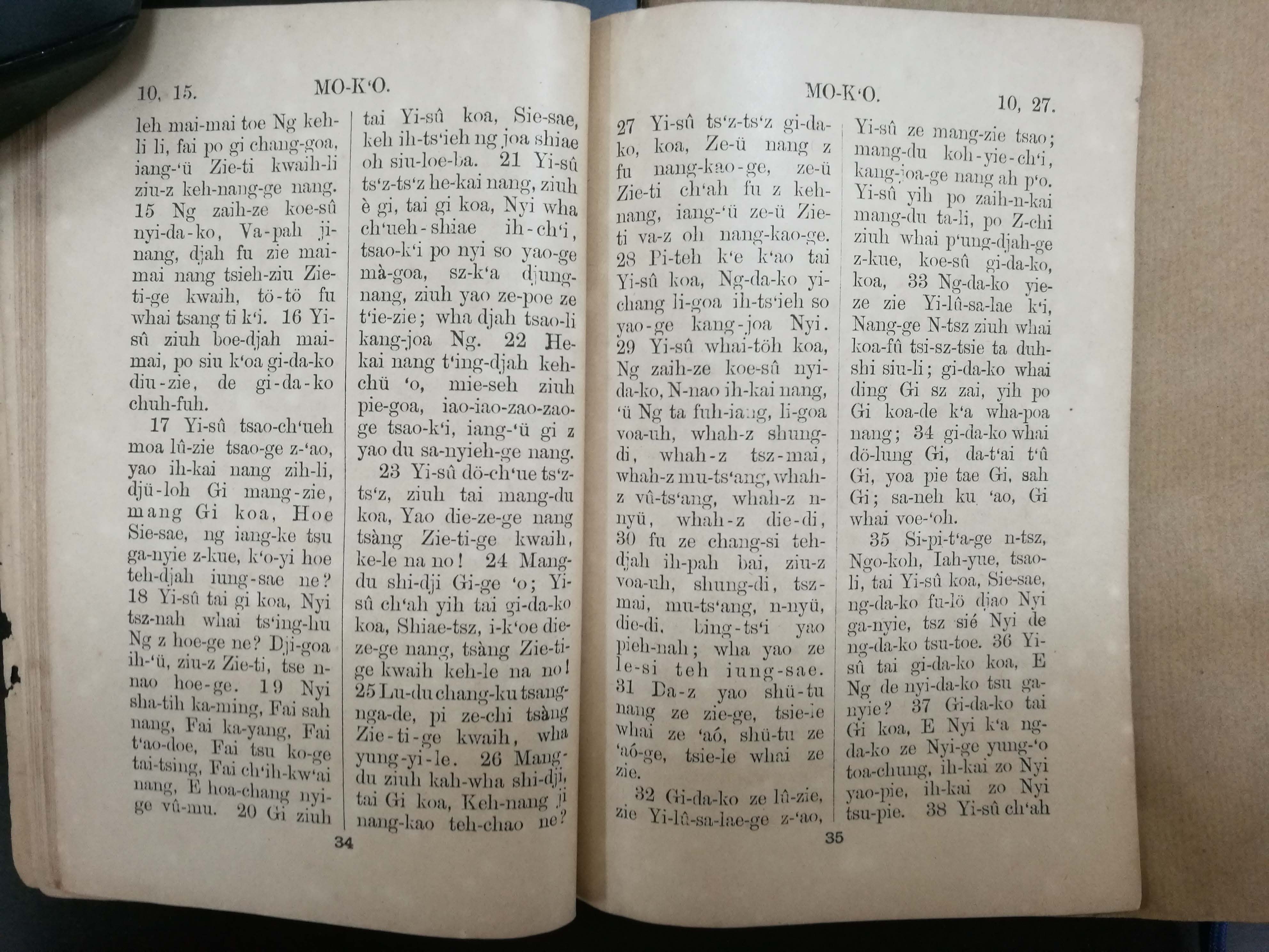 1902年溫州話羅馬字馬可福音 馬可福音 10 章 15 節到 10 章 38 節