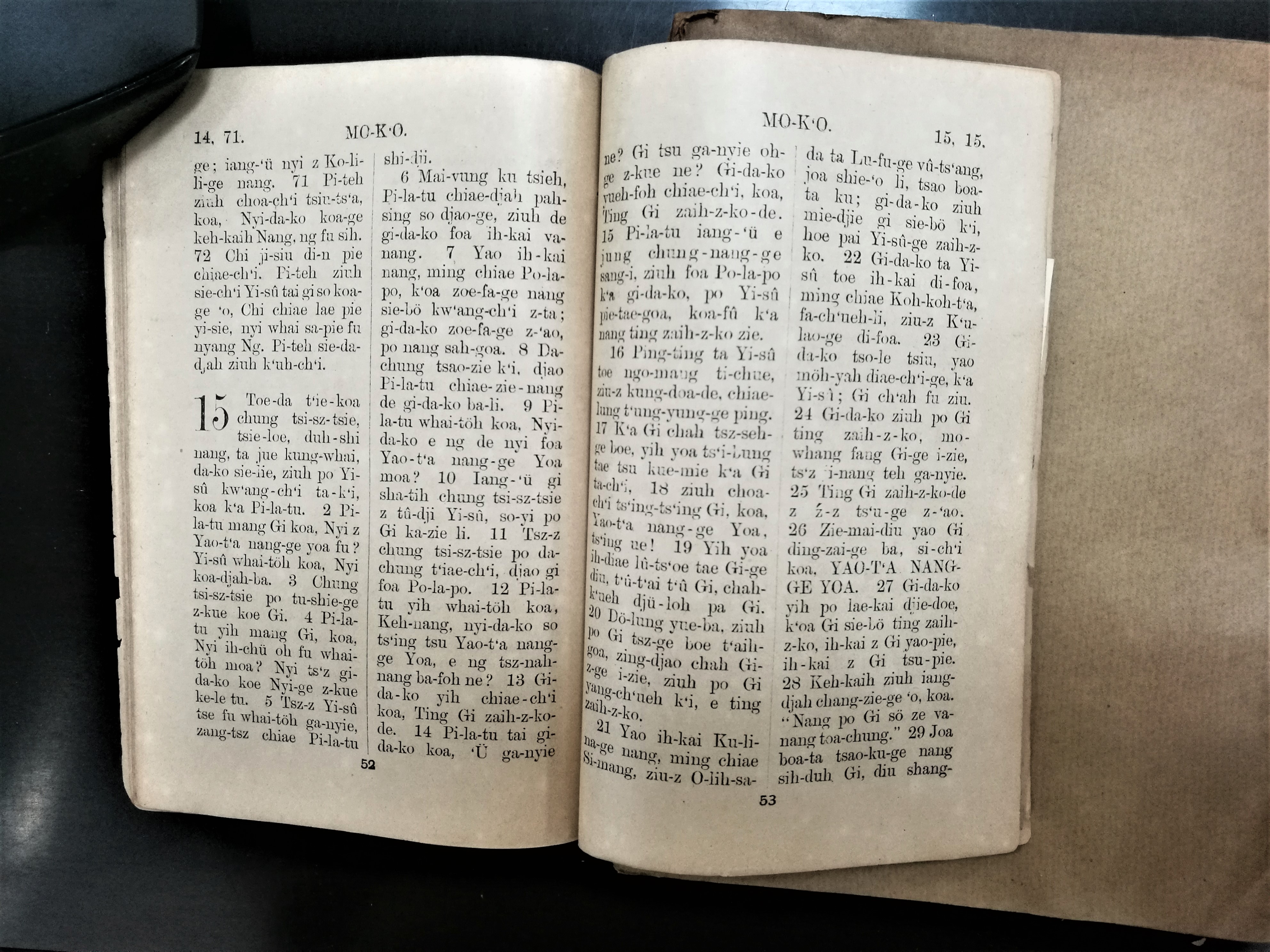 1902年溫州話羅馬字馬可福音 馬可福音 14 章 71 節到 15 章 29 節