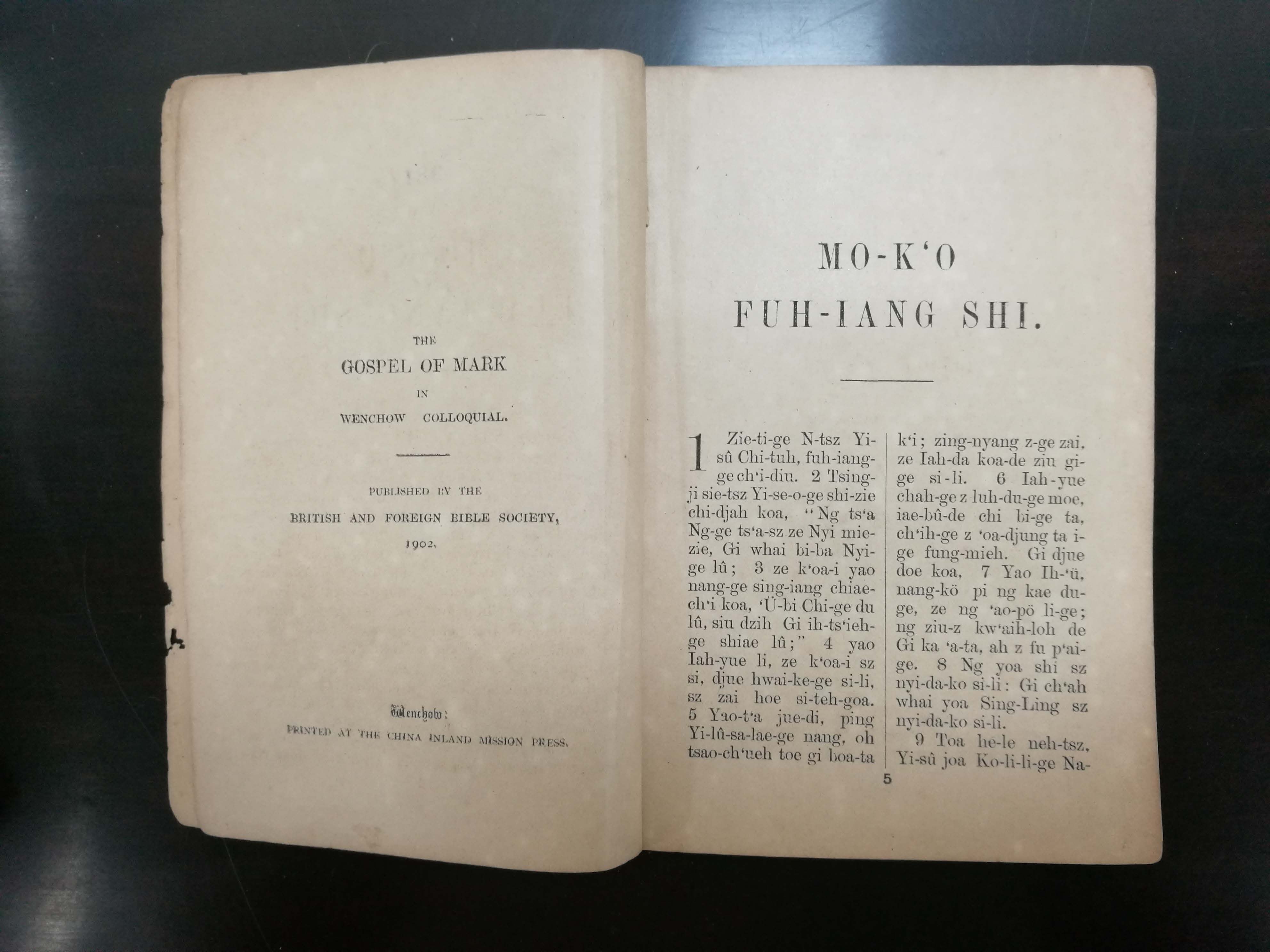 1902年溫州話羅馬字馬可福音 馬可福音 1 章 1 節到 1 章 9 節