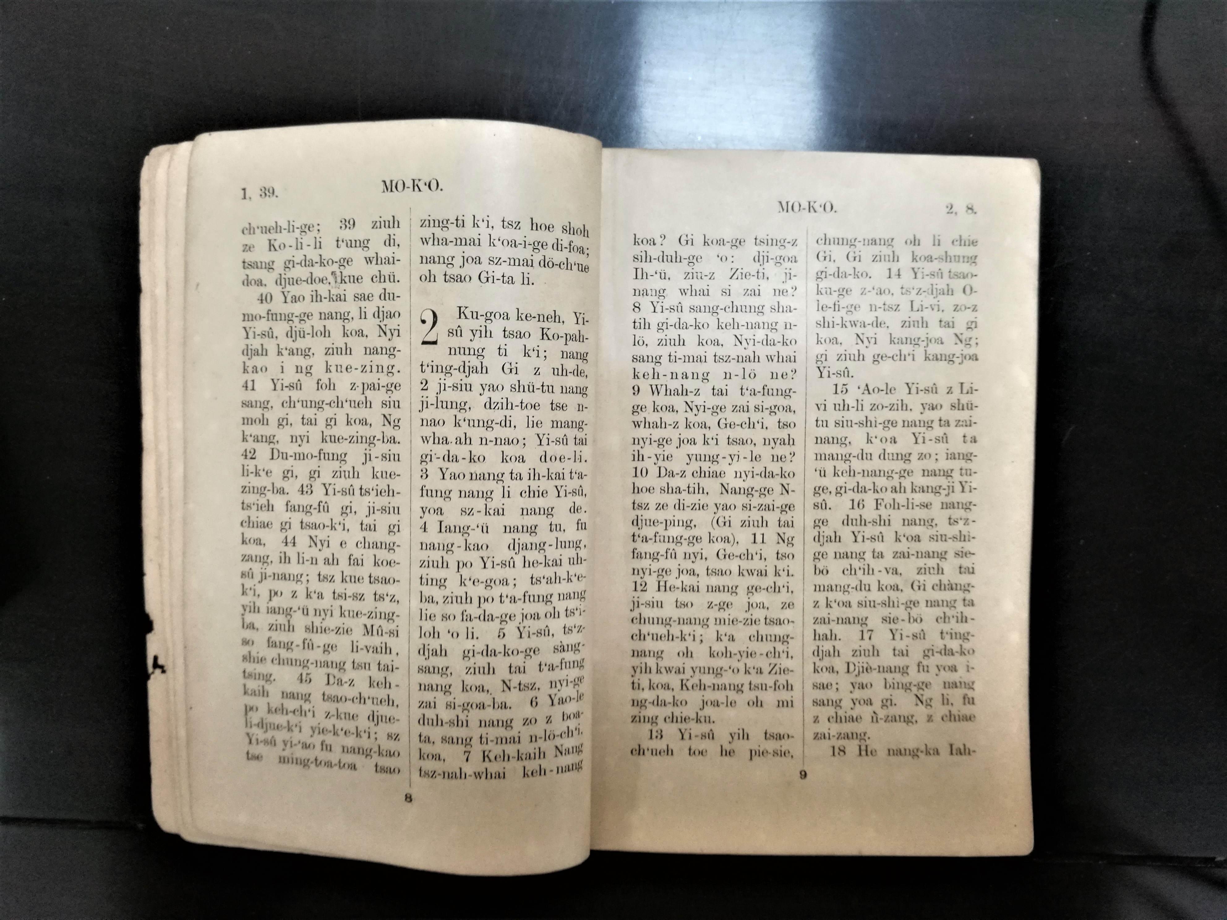 1902年溫州話羅馬字馬可福音 馬可福音 1 章 39 節到 2 章 18 節
