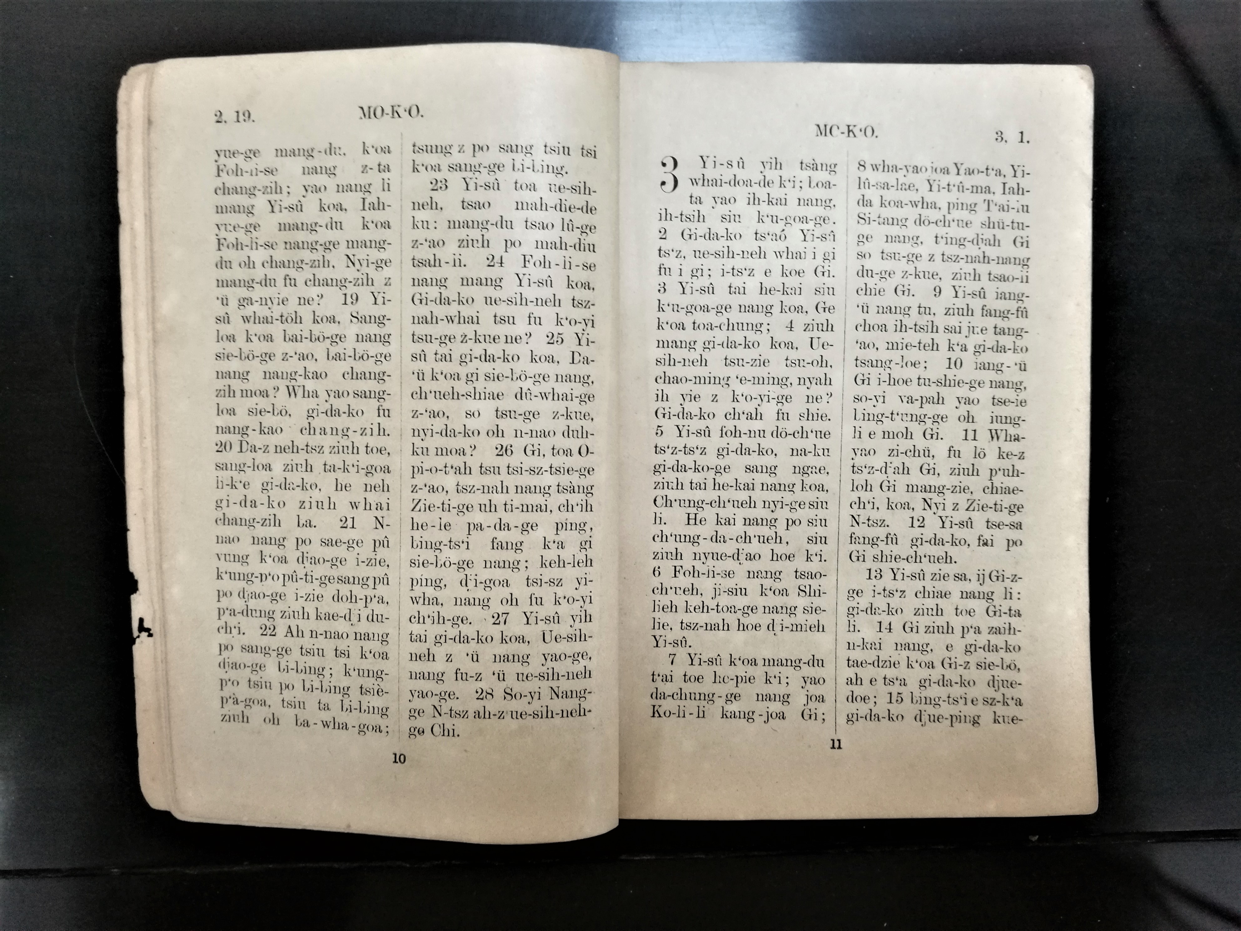 1902年溫州話羅馬字馬可福音 馬可福音 2 章 19 節到 3 章 15 節
