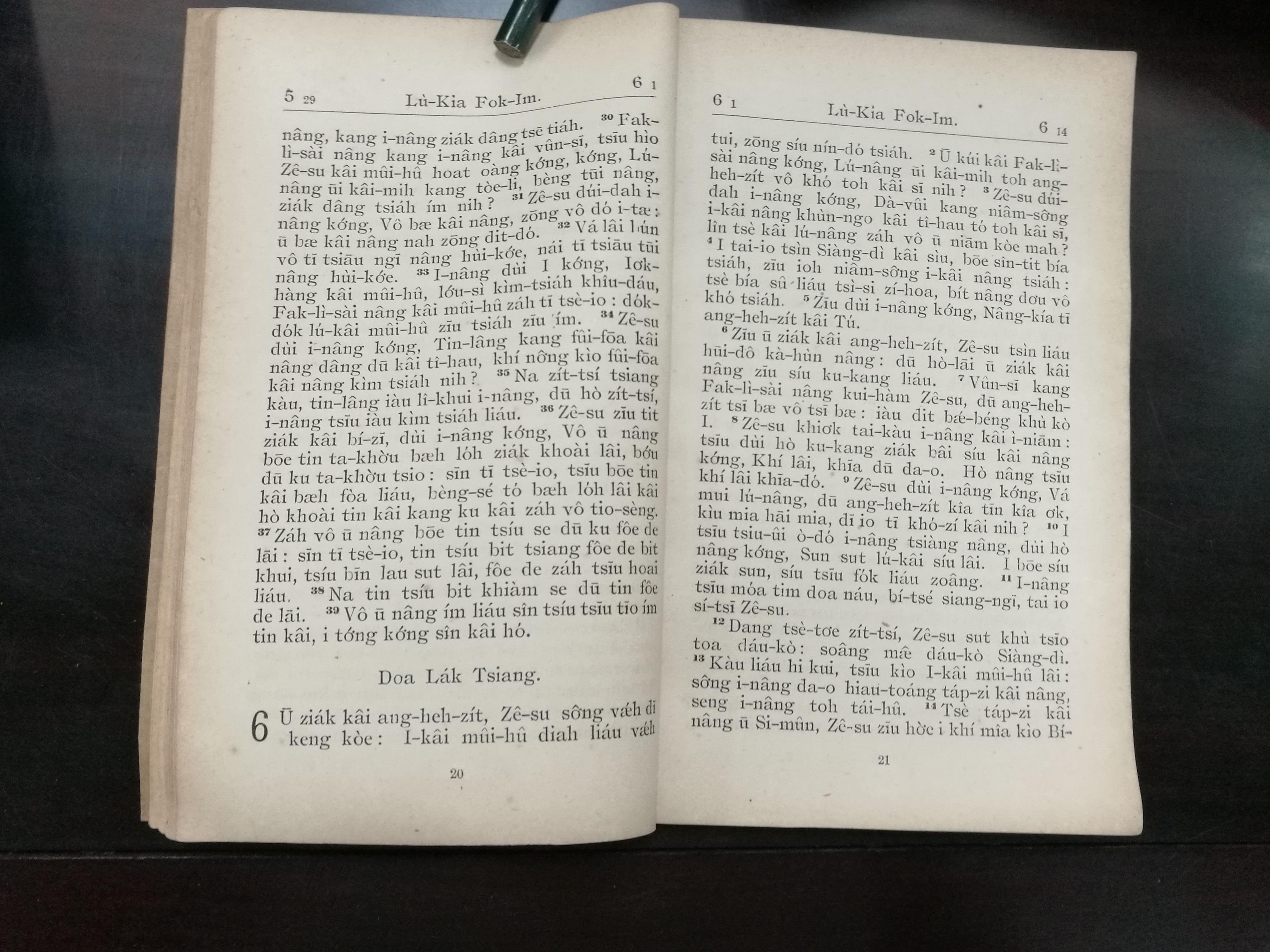 1916年海南話羅馬字路加福音 路加福音 5 章 30 節到 6 章 14 節