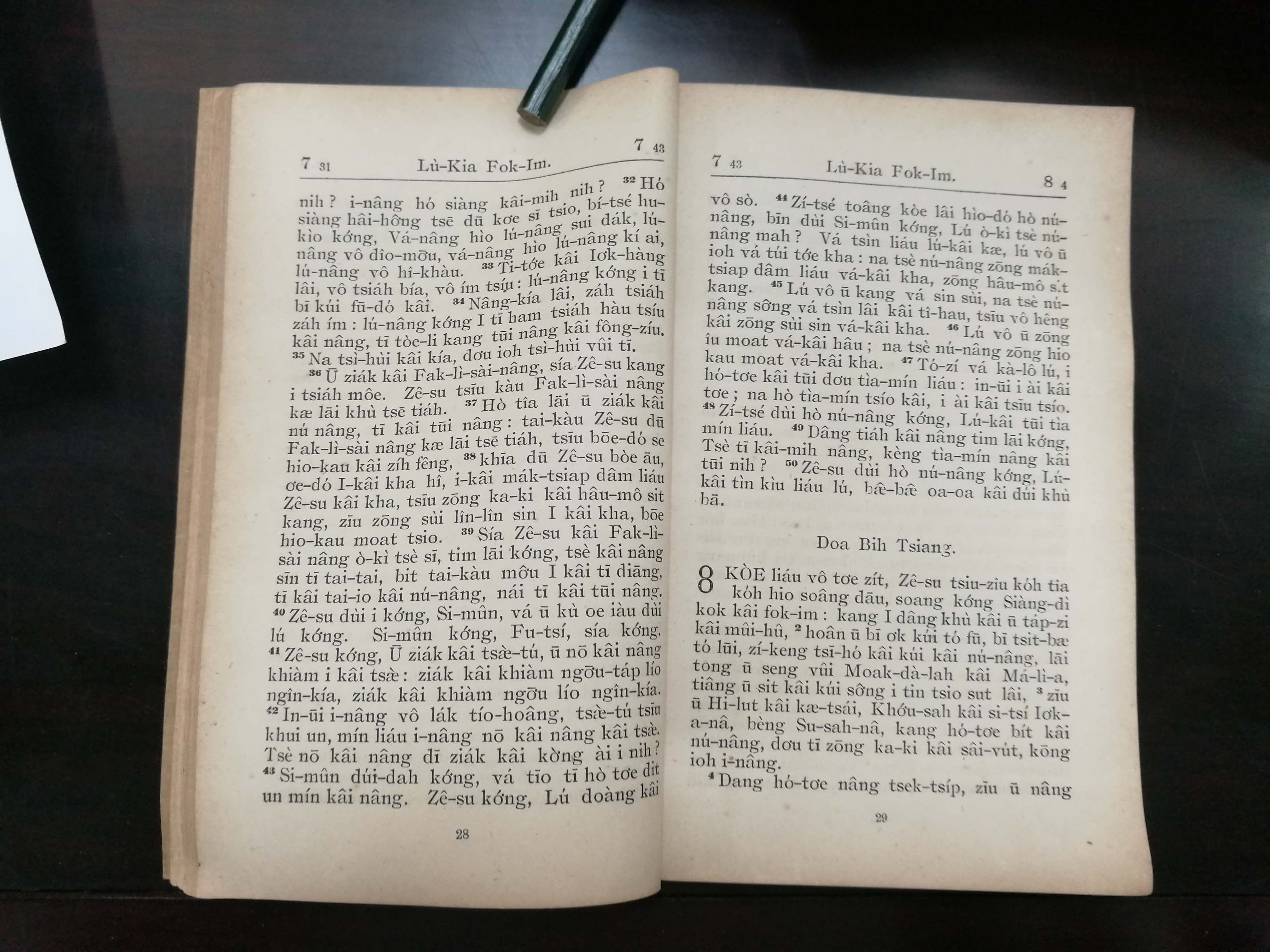 1916年海南話羅馬字路加福音 路加福音 7 章 32 節到 8 章 4 節