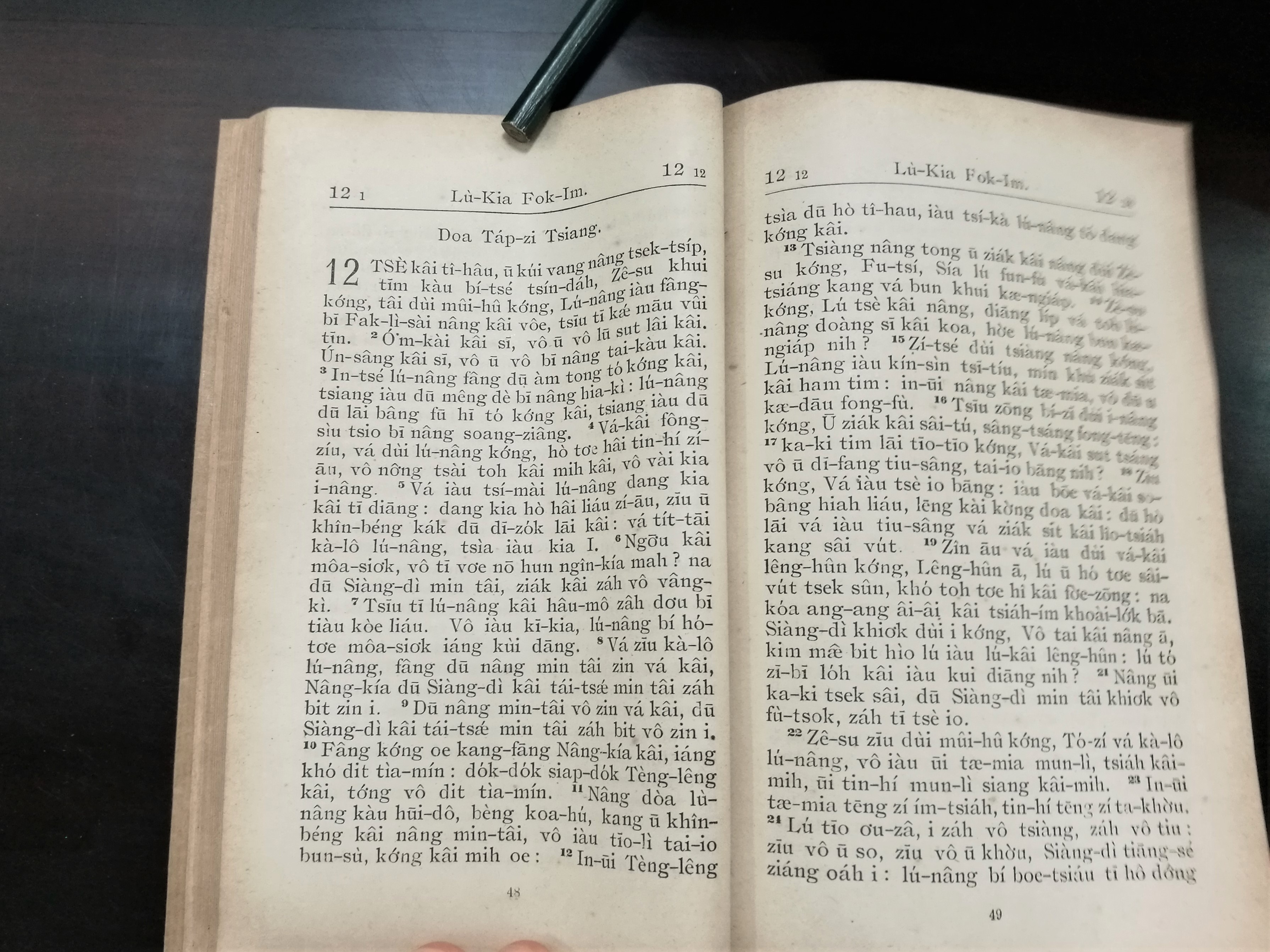 1916年海南話羅馬字路加福音 路加福音 12 章 1 節到 12 章 24 節