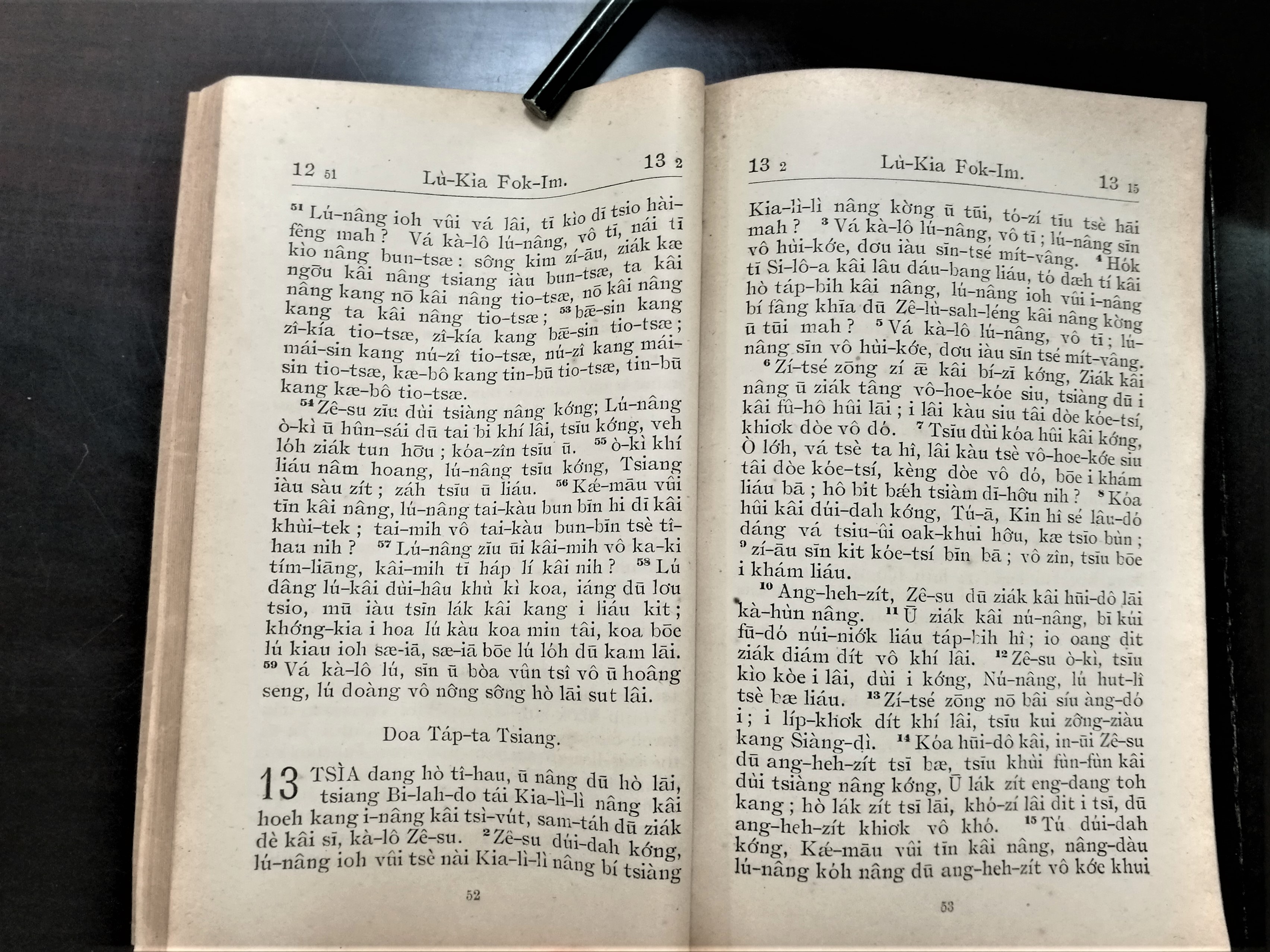 1916年海南話羅馬字路加福音 路加福音 12 章 51 節到 13 章 15 節
