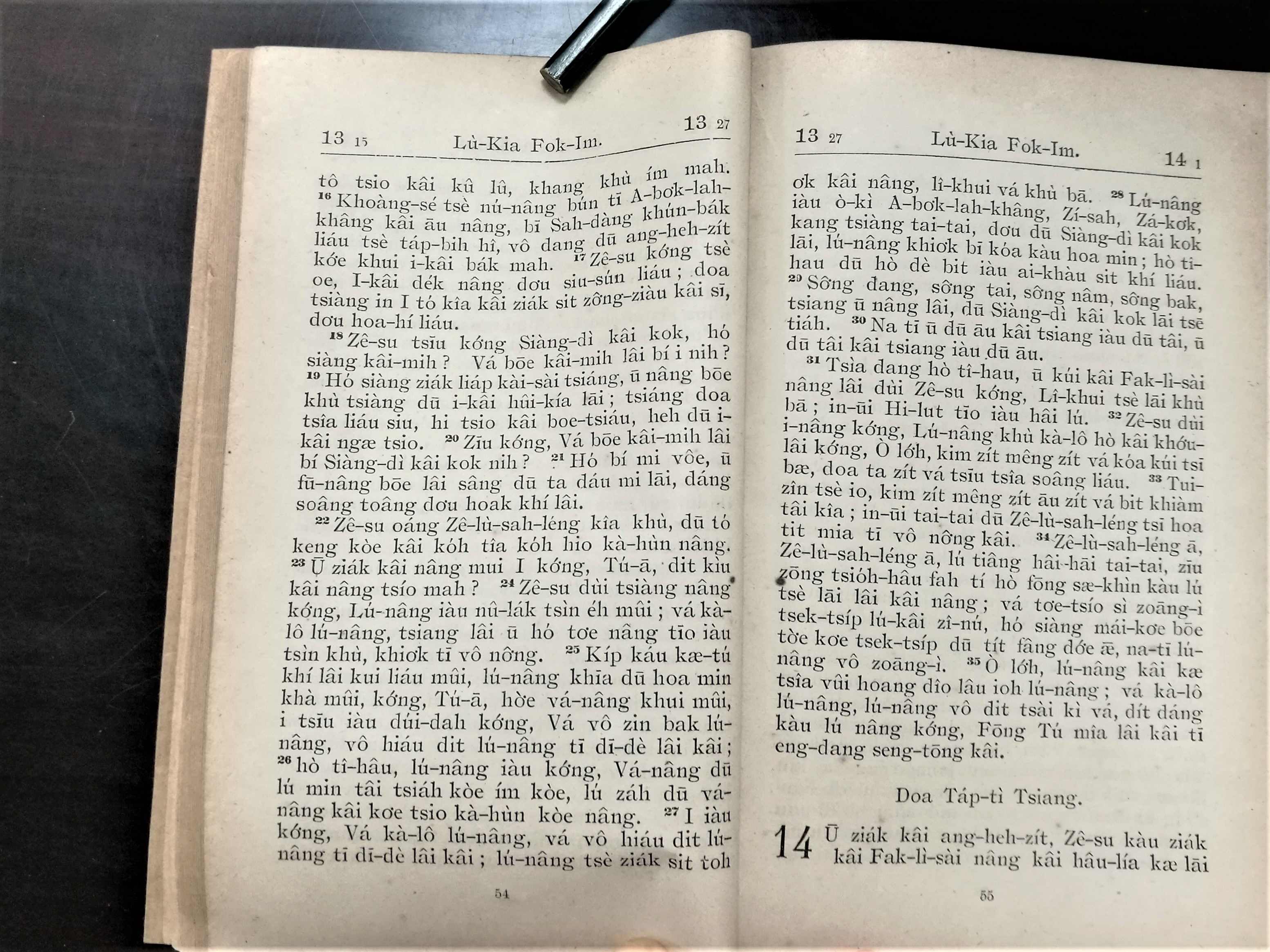 1916年海南話羅馬字路加福音 路加福音 13 章 16 節到 14 章 1 節
