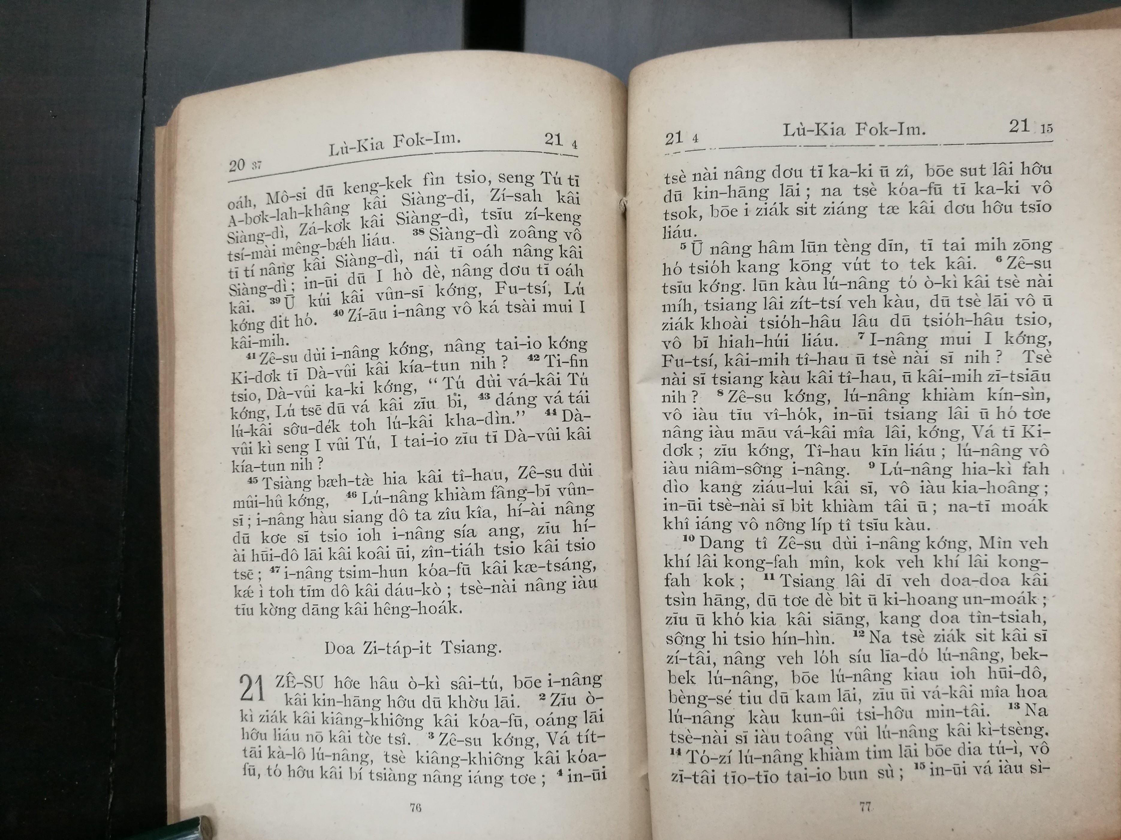 1916年海南話羅馬字路加福音 路加福音 20 章 38 節到 21 章 15 節