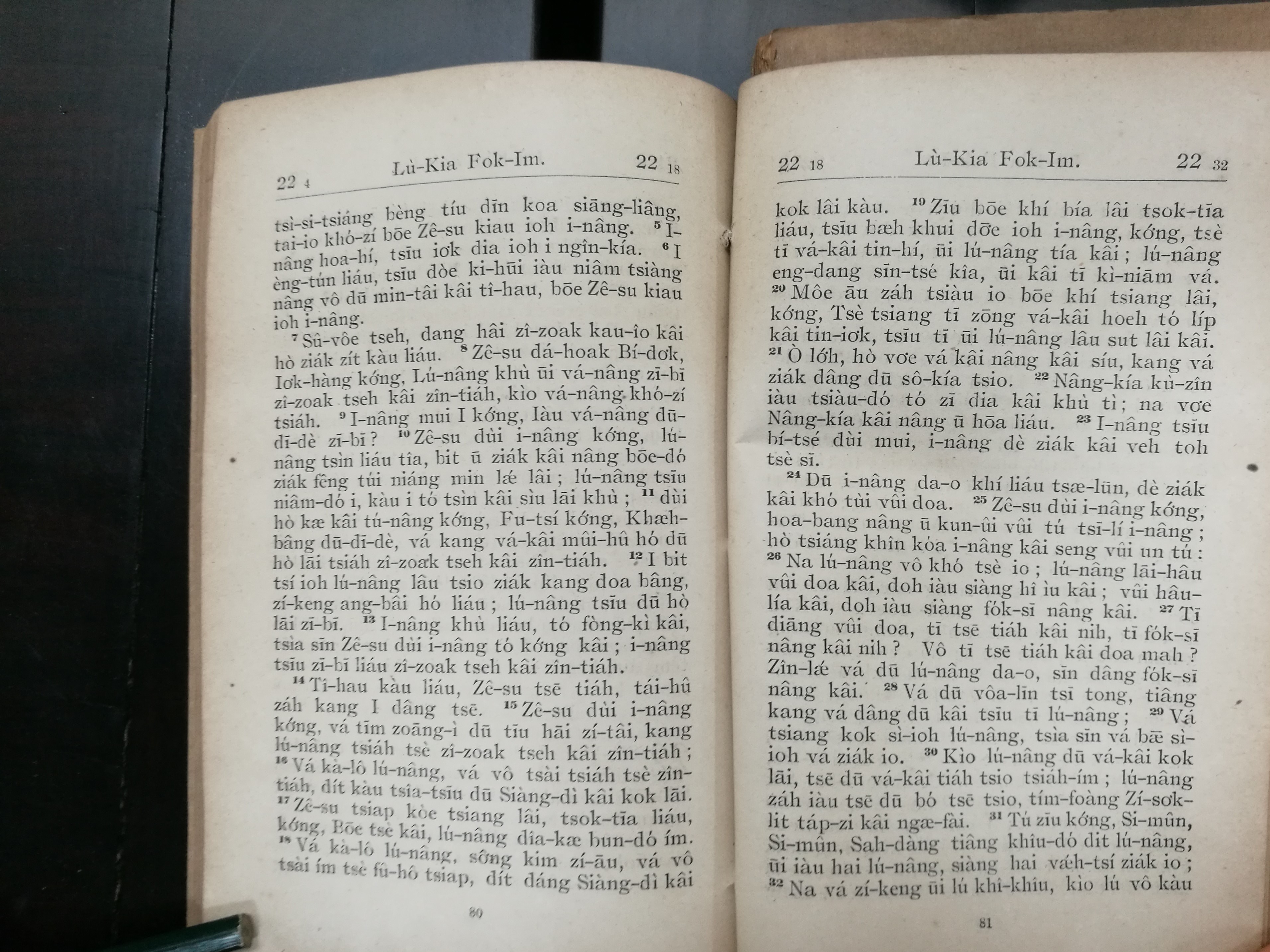 1916年海南話羅馬字路加福音 路加福音 22 章 5 節到 22 章 32 節