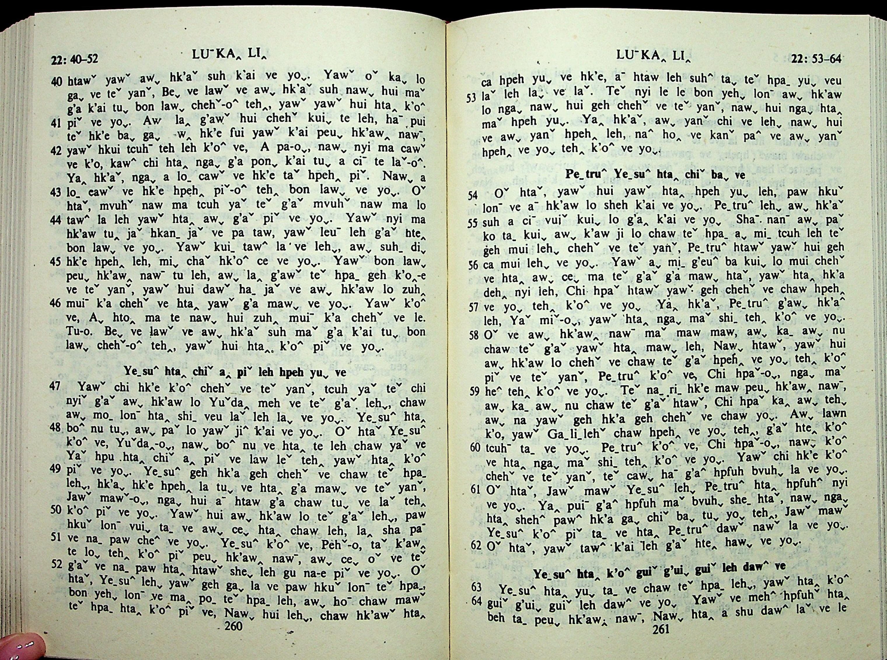 1985年拉祜文新約全書 路加福音 22 章 40 節到 22 章 64 節