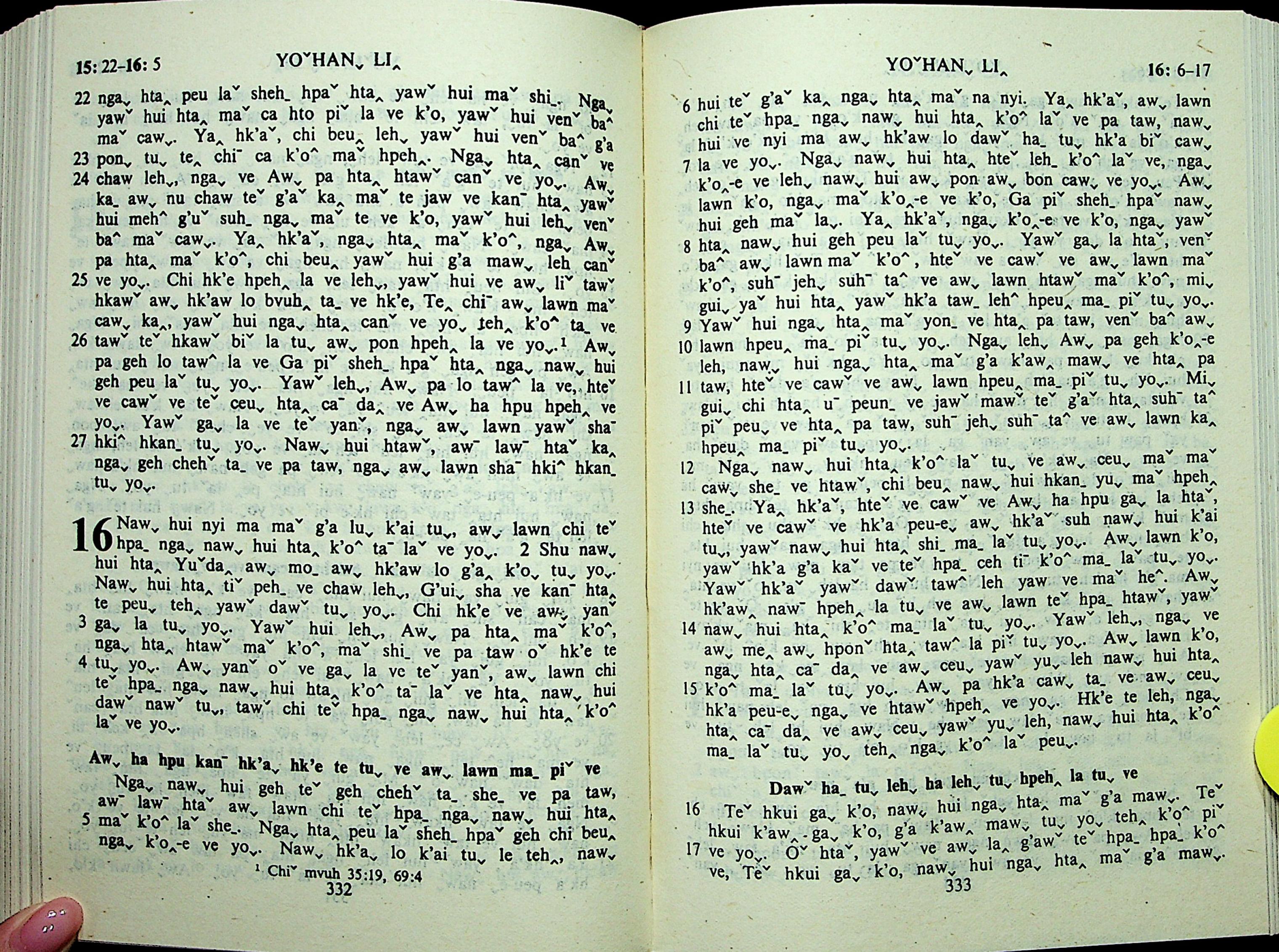1985年拉祜文新約全書 約翰福音 15 章 22 節到 16 章 17 節