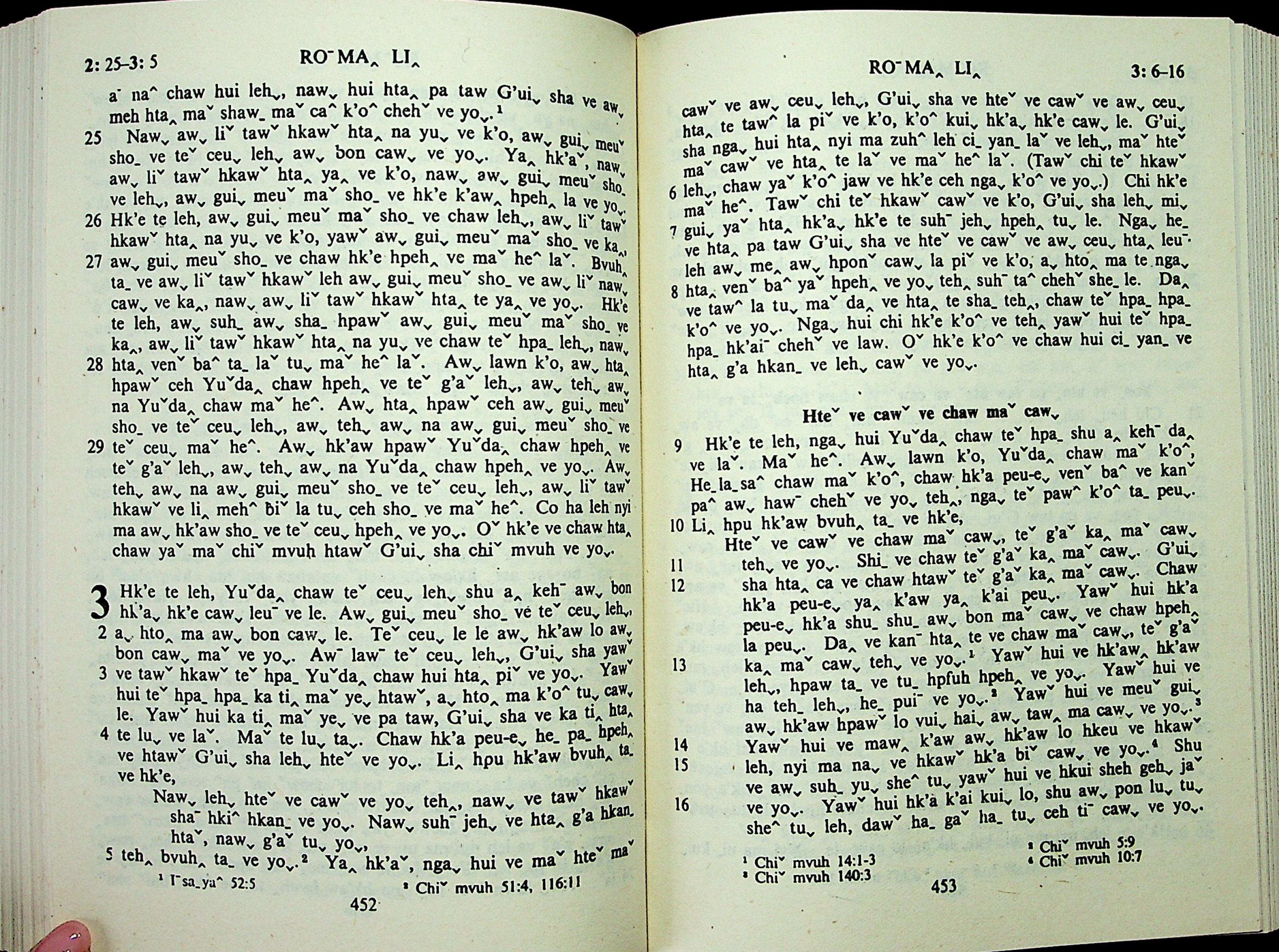 1985年拉祜文新約全書 羅馬書 2 章 25 節到 3 章 16 節