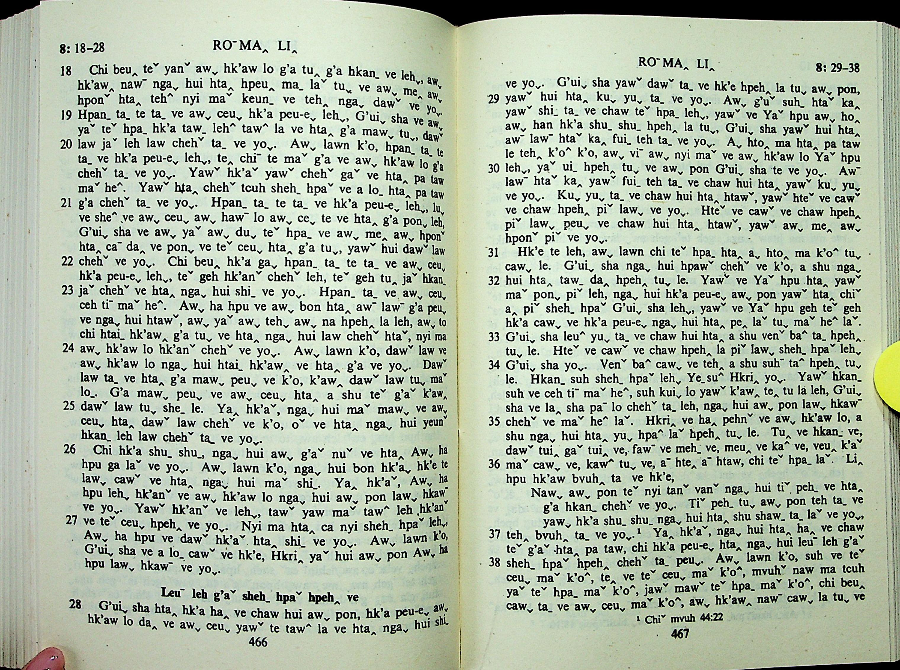 1985年拉祜文新約全書 羅馬書 8 章 18 節到 8 章 38 節