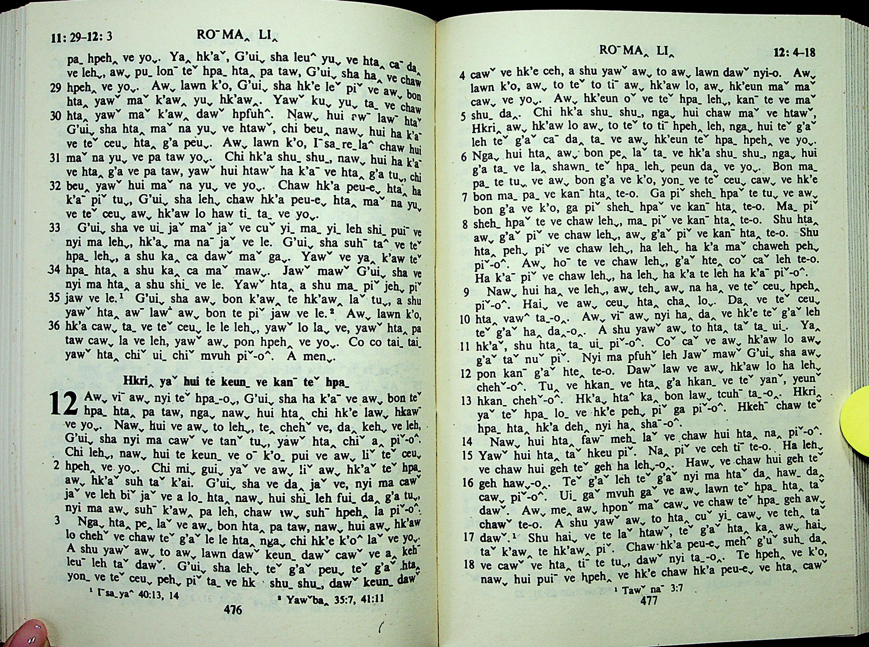 1985年拉祜文新約全書 羅馬書 11 章 29 節到 12 章 18 節