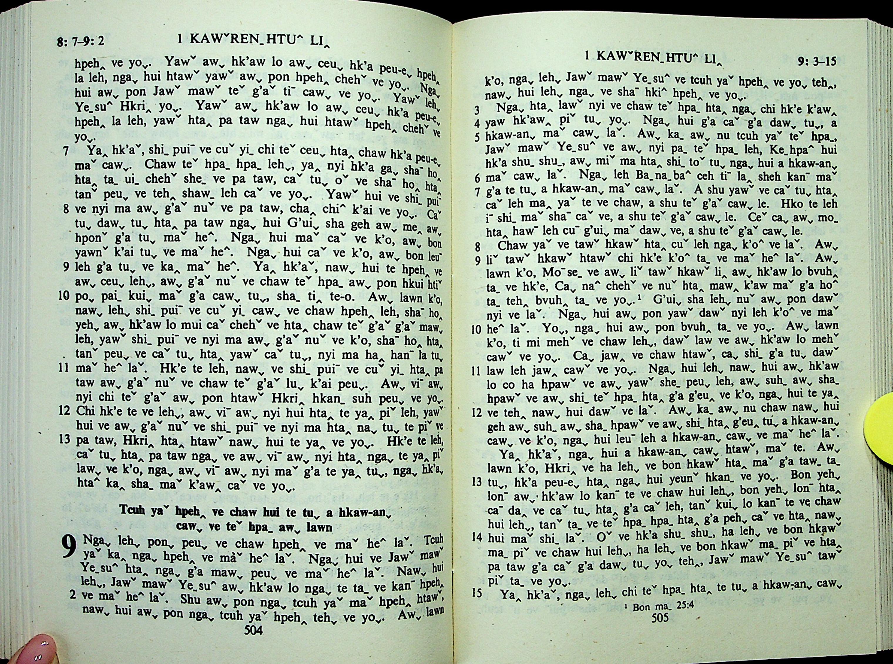 1985年拉祜文新約全書 哥林多前書 8 章 7 節到 9 章 15 節