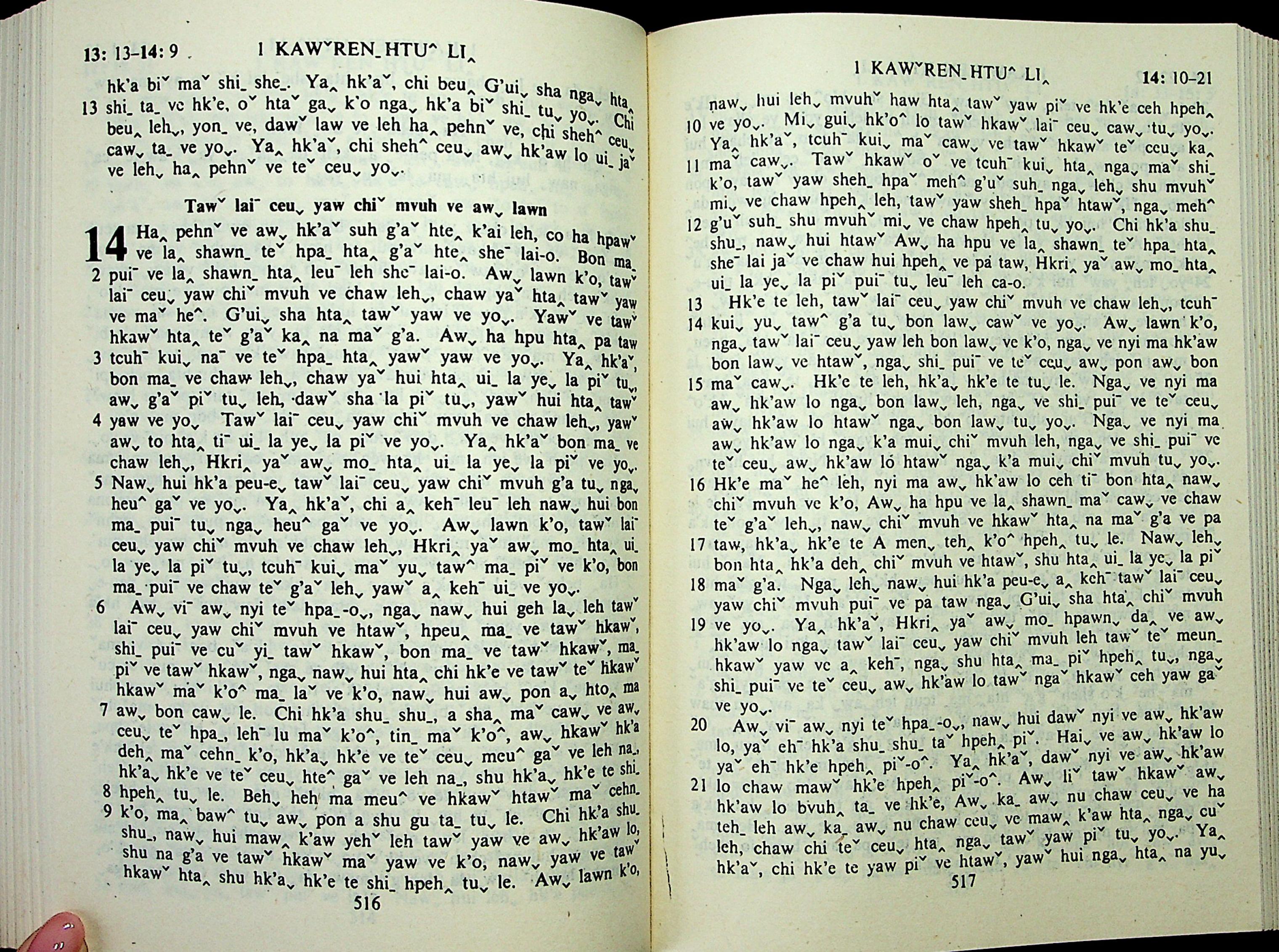 1985年拉祜文新約全書 哥林多前書 13 章 13 節到 14 章 21 節