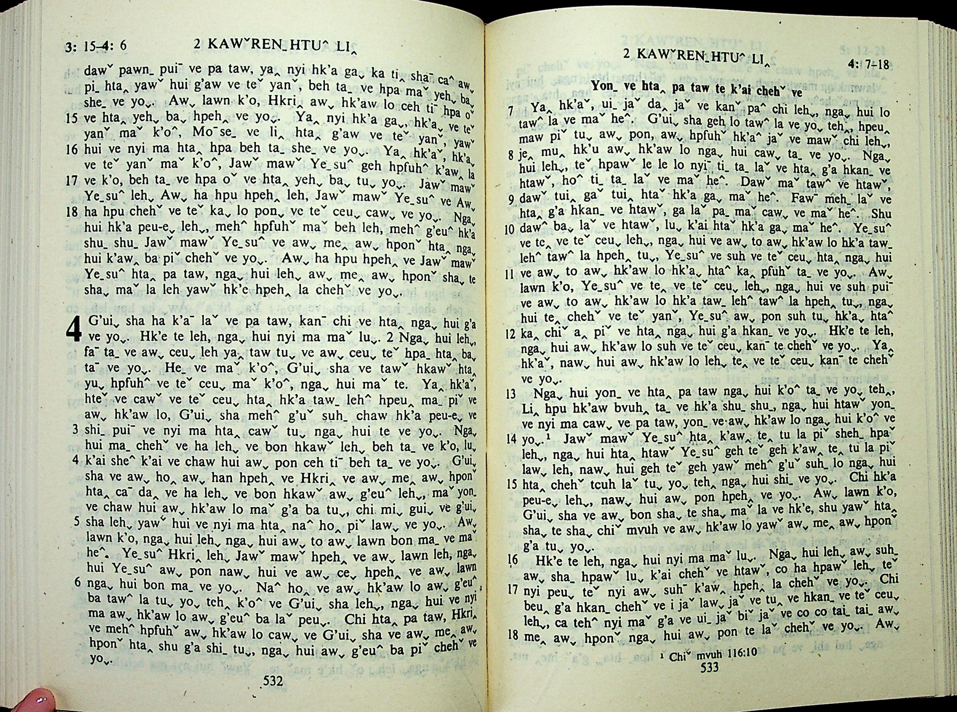 1985年拉祜文新約全書 哥林多後書 3 章 15 節到 4 章 18 節